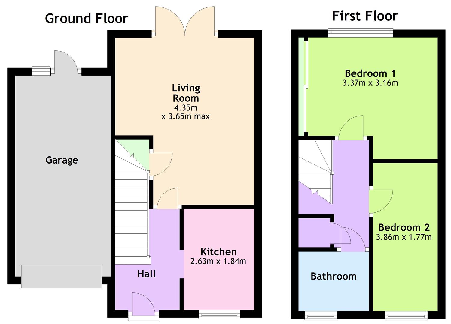 A private tarmac driveway offering parking for one vehicle leads to a single car garage with up and over door to the front and window and pedestrian door to rear garden.