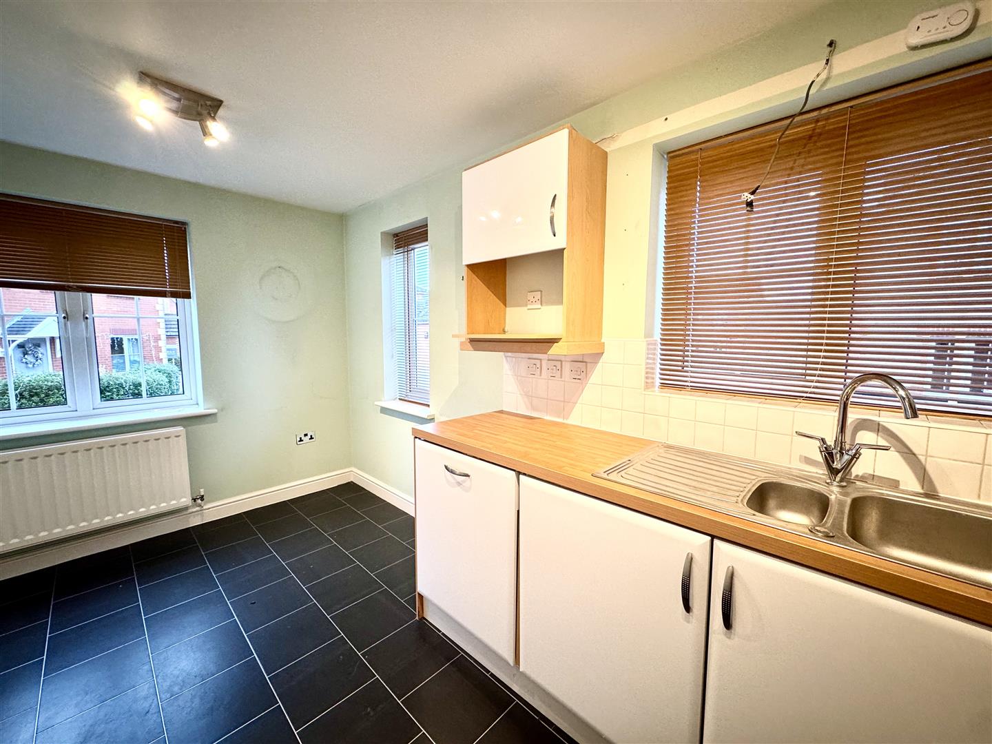 Appointed with a matching range of eye and base level cupboards with work surfacing over and tiled splashbacks. Four ring gas hob with double oven under and stainless steel extractor fan over. Integrated appliances to include fridge/freezer, dishwasher and washing machine. One and a half bowl sink with drainer and chrome mixer tap. Combi-boiler. Space for dining table and chairs. Triple aspect windows to side and front elevations. Ceramic tiled flooring.