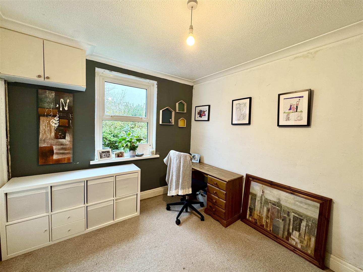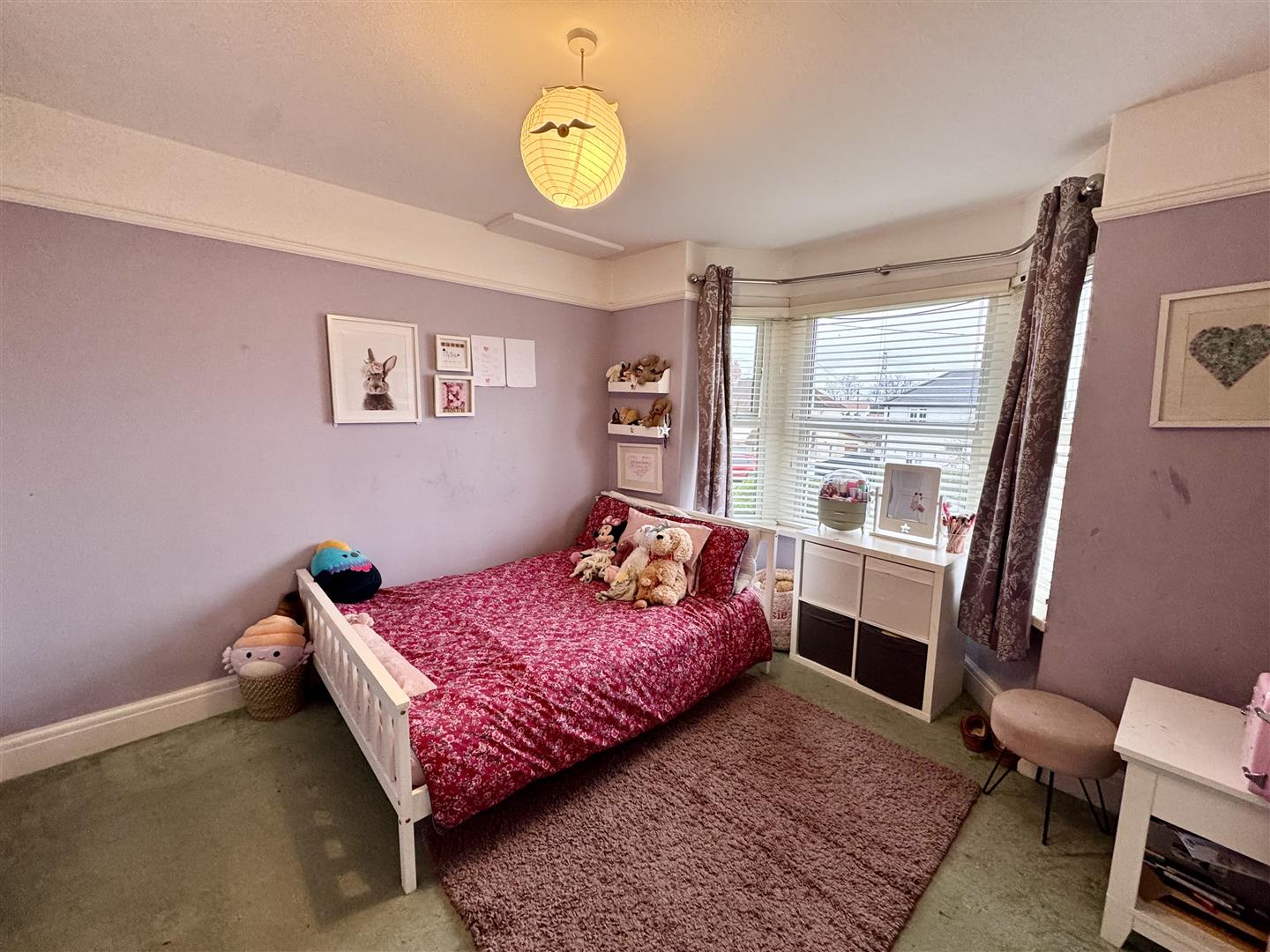 Bay fronted window overlooking the private front garden, with useful built-in storage cupboard.