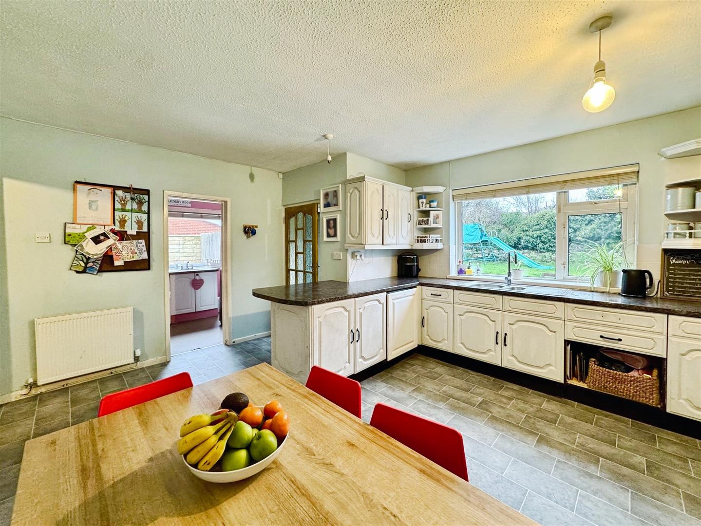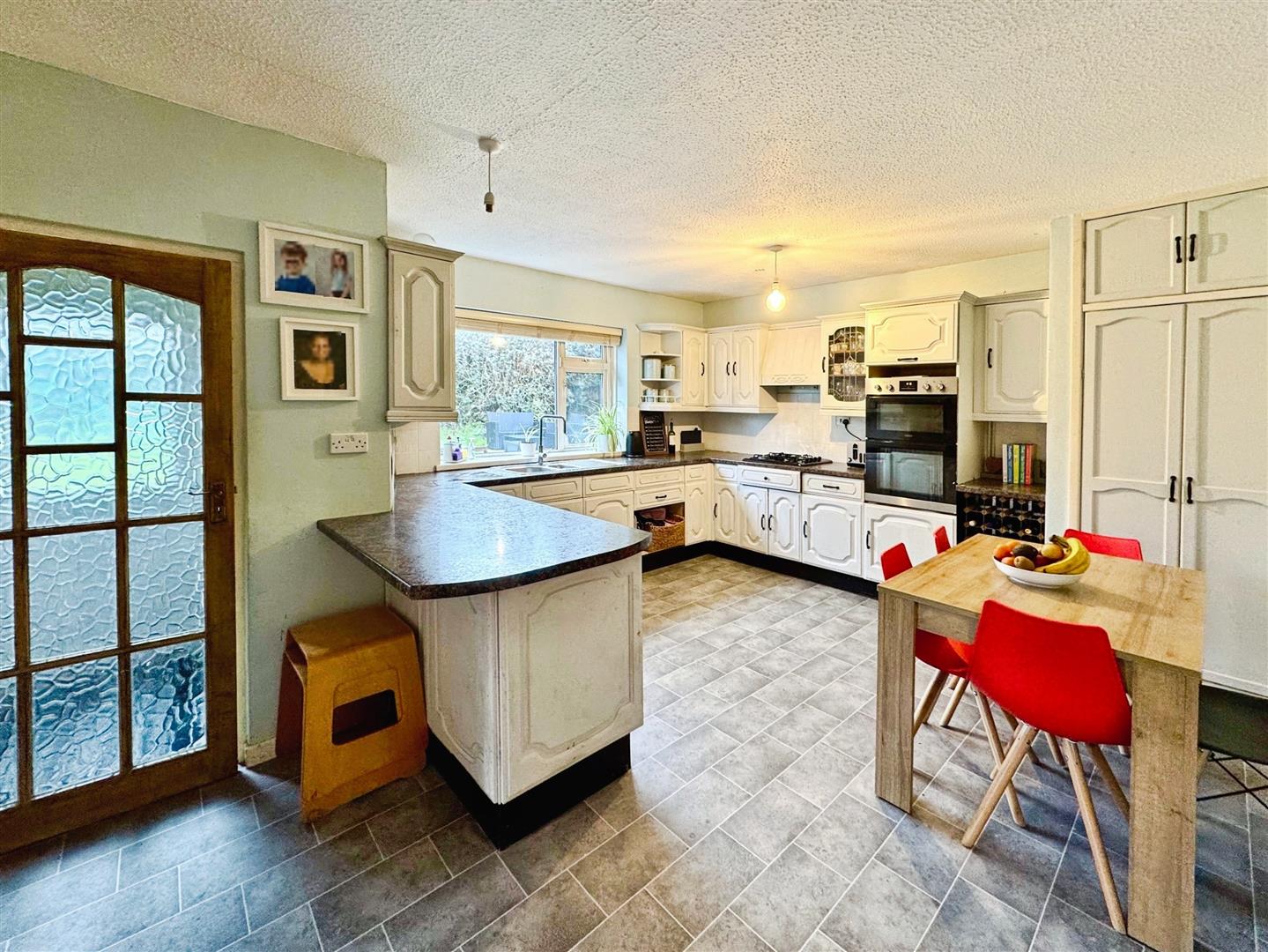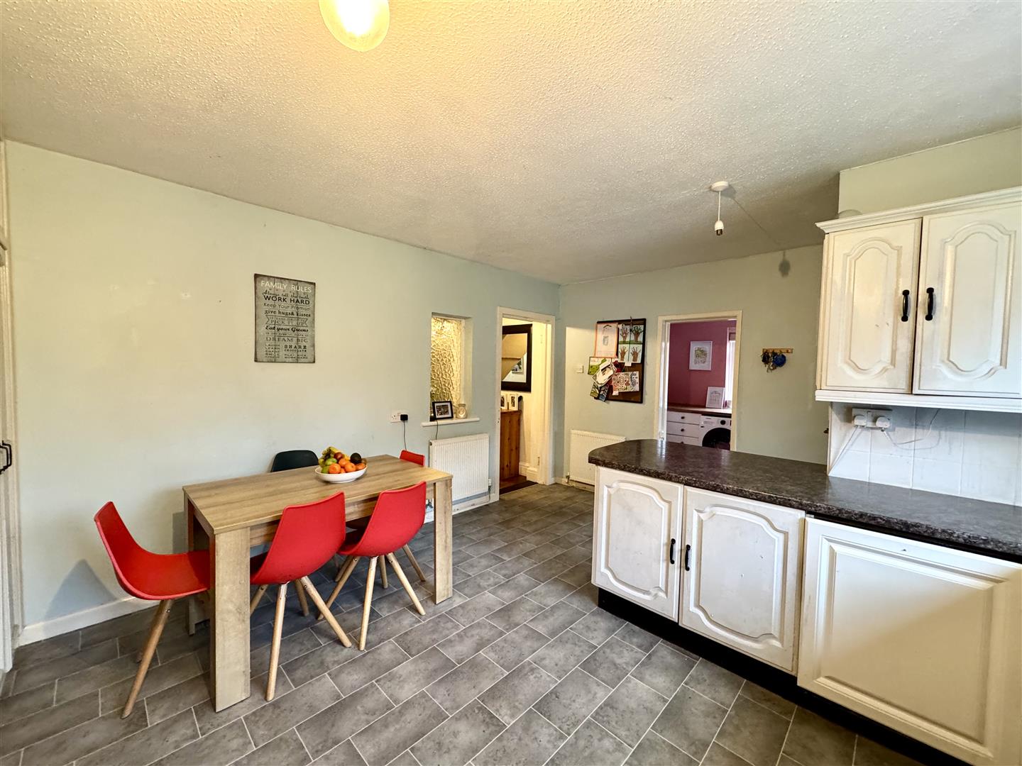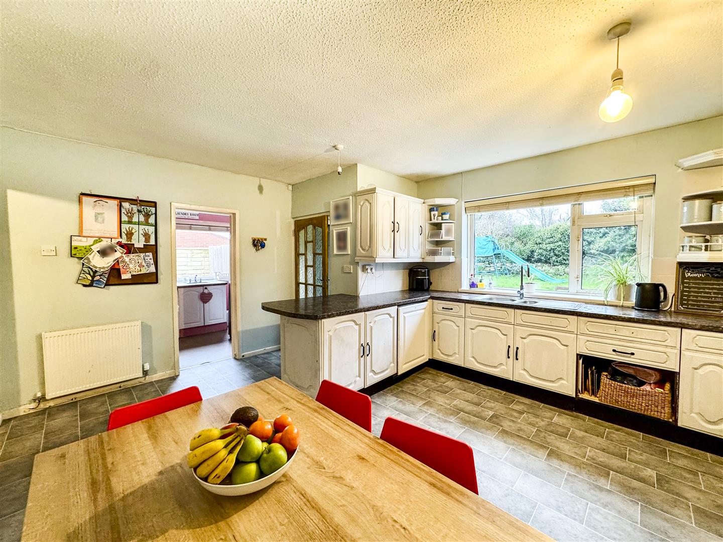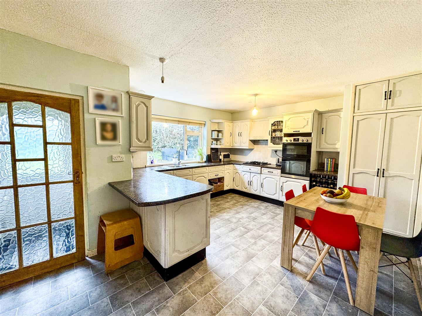 Well-appointed with a good range of eye and base level cupboards with laminate worktops and inset one and a half bowl stainless steel sink and drainer with chrome mixer tap. Integrated four ring gas hob with concealed extractor over, integrated eye level oven and integrated dishwasher. Tiled floor. Window to the rear elevation. Door to rear porch/lobby. Access to:-