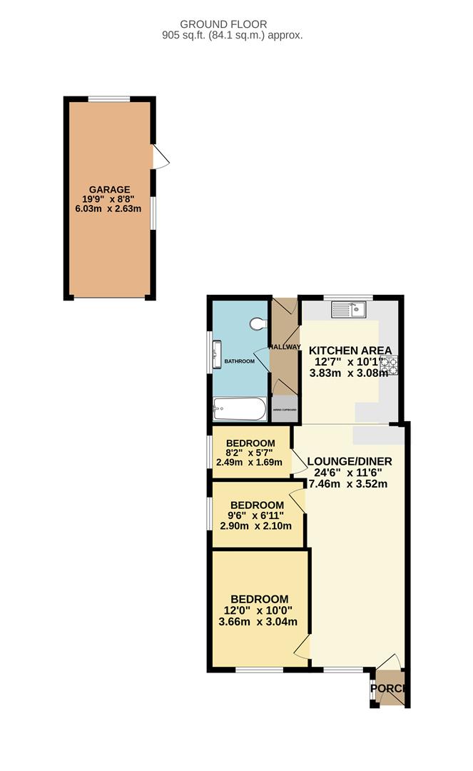 To the side of the property there is a concrete driveway providing further off street parking, accessed via double wrought iron gates leading to the detached brick built single garage with up and over door with light and power connected. Windows to side and rear elevations with courtesy door leading to the rear garden.