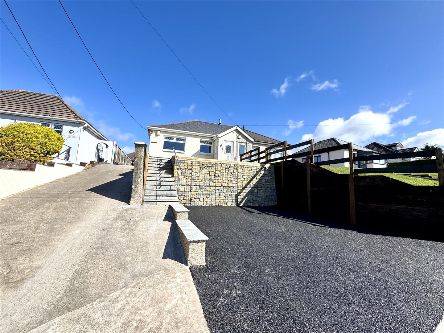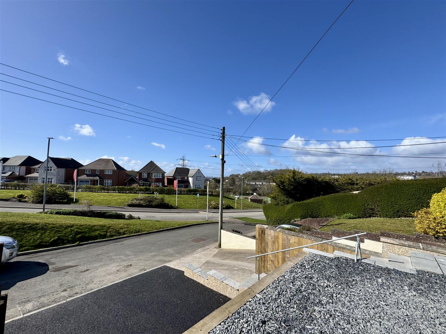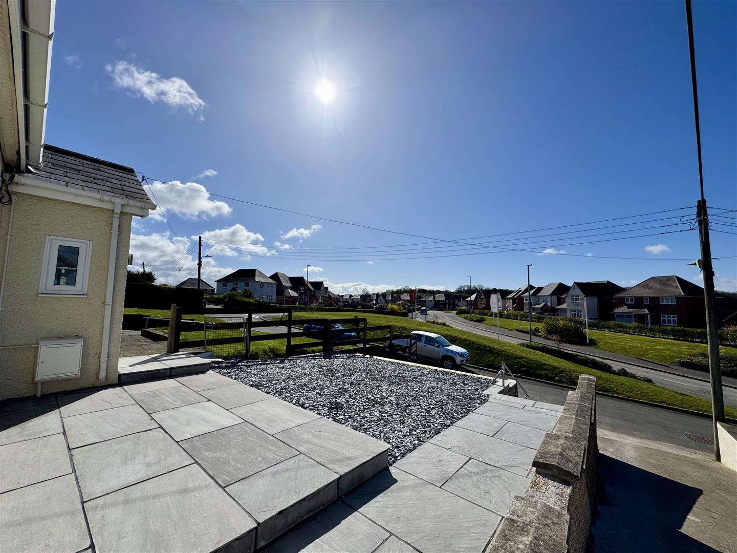 At the front of the property is a contemporary paved terrace affording elevated open view and south facing sunny aspect providing an ideal space for dining and entertaining. There is also a low maintenance area laid to slate. A paved pathway and steps lead down to the private concrete driveway providing off street parking for at least one vehicle. The rear garden is sizeable and comprises a good size paved terrace area leading to a low maintenance area laid to attractive slate. A paved pathway then leads to a very generous level area mainly laid to lawn with a range of attractive shrubs and trees. The rear garden is enclosed by timber fencing.
