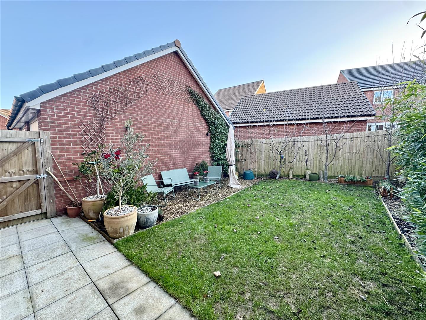 To the front of the property there is a sizeable low-maintenance level garden mainly laid to lawn with low-level hedgerow and a range of attractive plants and shrubs. Paved pathway leads to the entrance door with a storm porch. The rear garden comprises a seating area with exterior down lighters, perfect for dining and entertaining and an area laid to lawn providing an ideal safe space for children to play but also offering a blank canvas for the garden enthusiast. The garden also benefits from a range of attractive fruit trees, flowers and shrubs. The rear garden is fully enclosed with paved pathway leading to gated pedestrian access to the garage.