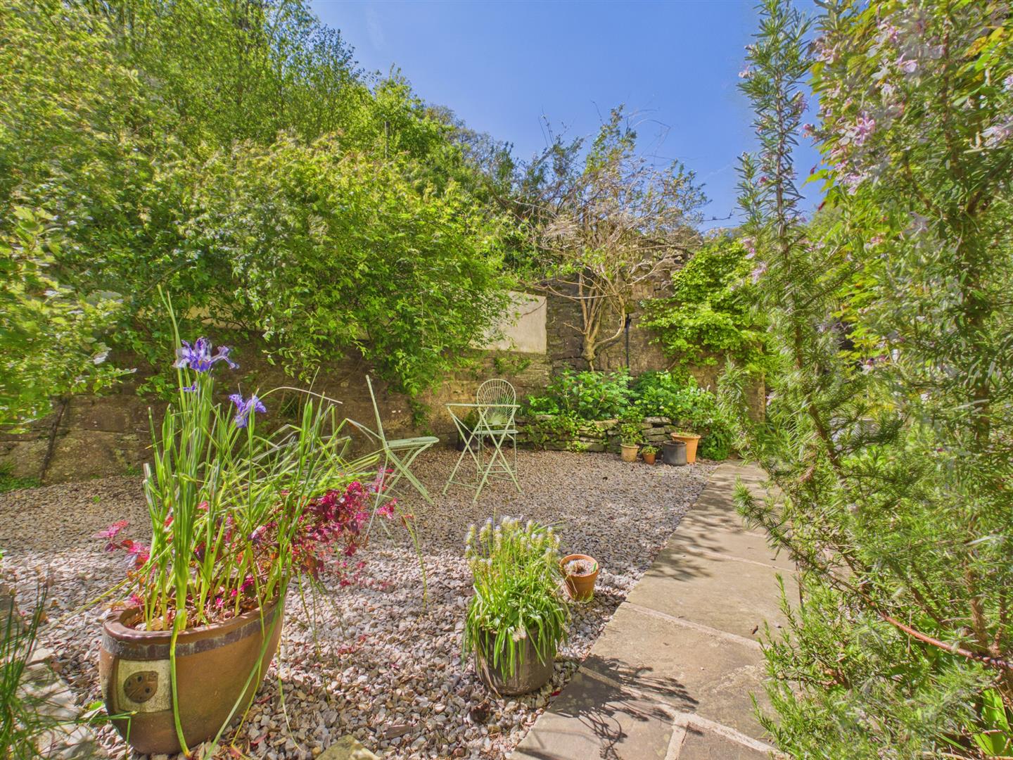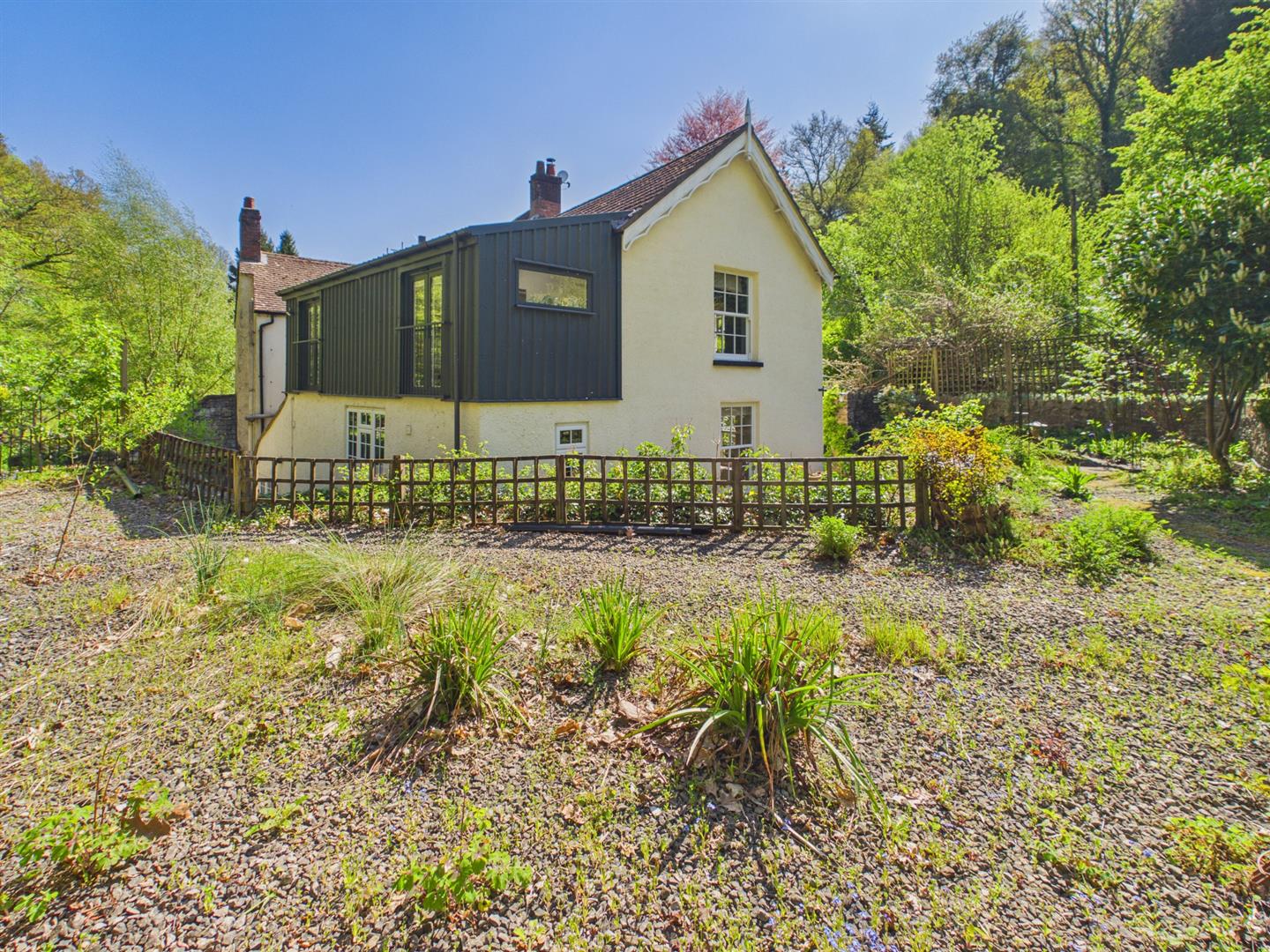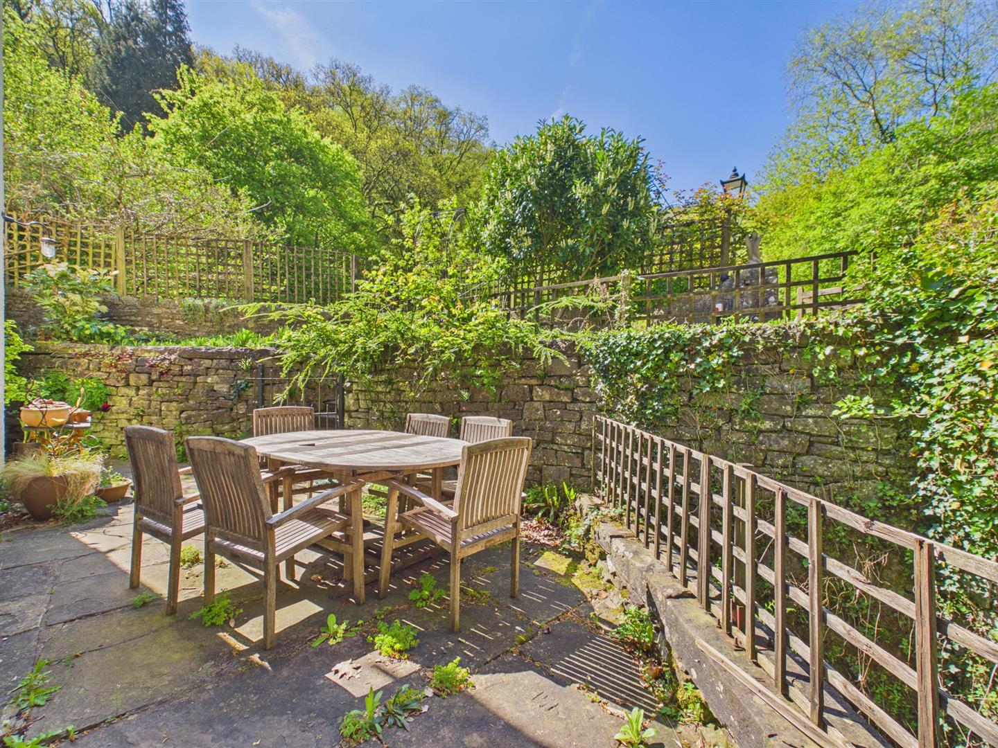 To the front of the property there is a paved entrance as well as a beautiful courtyard area with lots of privacy. Feature stone walls and plants surround providing an ideal alfresco space for dining and entertaining. Gated pedestrian access to the side and steps lead up to the parking area. The rear garden has steps leading up to a terrace area laid to stones providing an ideal space for dining and entertaining whilst enjoying views across the woodland. Further steps lead up to another enclosed area which in turn wraps around to the side of the property and leads to the private parking area. Useful outdoor store room. A gravel pathway leads to the rear and around the side of the property housing the oil tank, with steps leading up to a side paved courtyard area providing a further ideal space for dining and entertaining which wraps around to the front of the property from the rear. A feature stone archway and wrought iron gate lead through to a further sizeable mature garden area mainly laid to lawn, bordered by a range of attractive plants and shrubs leading onto a further level area laid to lawn providing a blank canvas for the garden enthusiast or indeed a safe space for children to play. Feature stream to one side and a wooden summerhouse providing ideal storage or indeed excellent potential for a studio if desired benefiting light and power. To the side of the summerhouse a further gateway leads to another sizeable garden area currently with greenhouse and very established vegetable plot. There is also a further wooden shed for storage and area laid to lawn. The garden enjoys an easterly, southerly and westerly aspect providing sun throughout the day and will no doubt suit a variety of requirements.