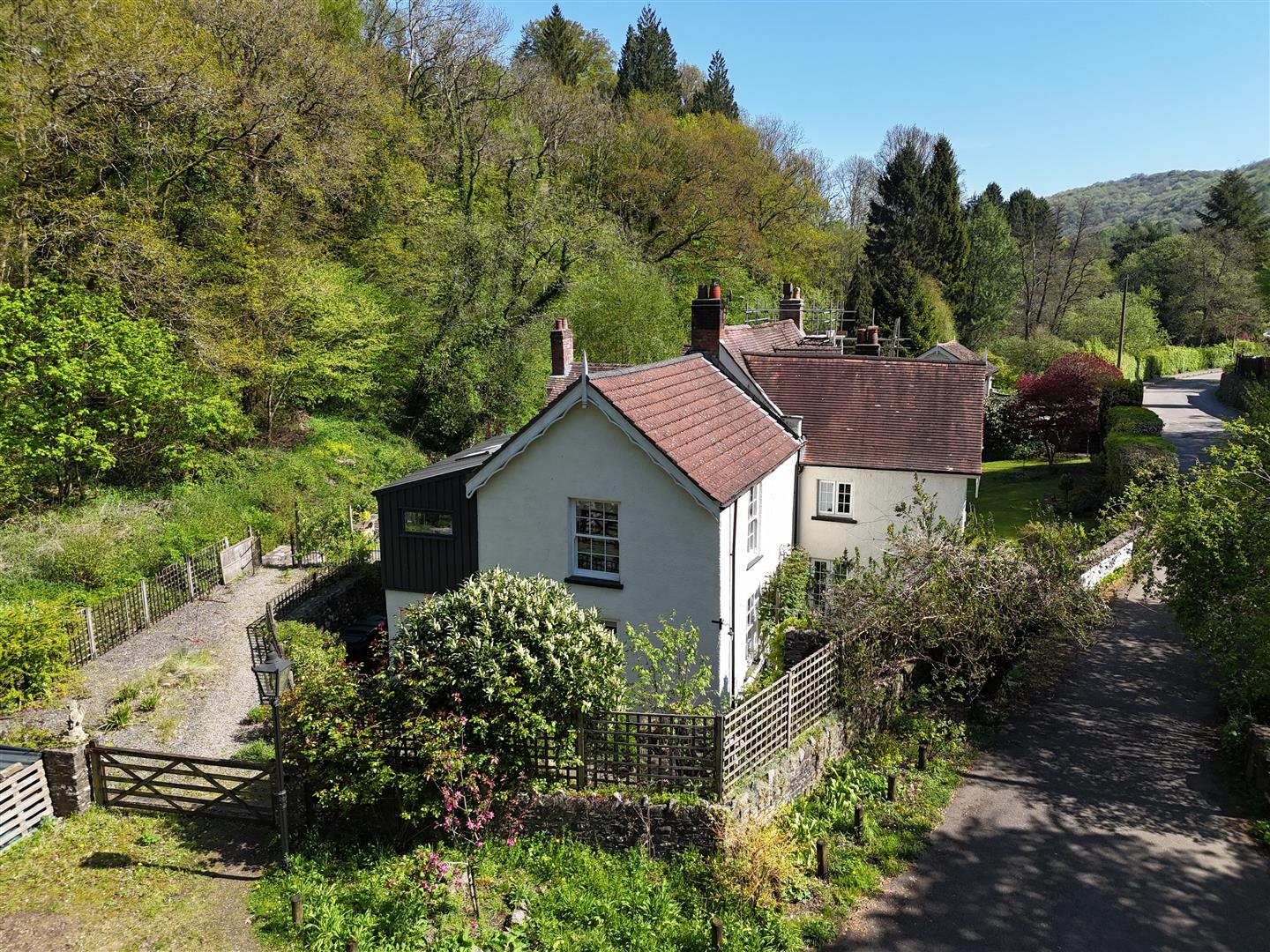 Situated in the desirable Monmouthshire village of Tintern, in the heart of the picturesque Wye Valley, 1 Firgrove comprises a deceptively spacious country residence, combining a former mill with Georgian addition, blending a wealth of character charm and features with contemporary fixtures and fittings, having been renovated throughout by the current vendors in recent years. The well-planned living accommodation affords fantastic versatility to suit a variety of markets and briefly comprises to the ground floor; a grand reception hall, generous living/sitting room with French doors to front courtyard, a formal dining room, high-specification fully fitted kitchen/breakfast room and a useful WC/ cloakroom; steps lead down to a good size utility/store room with wine cellar off. The first floor offers three well-proportioned double bedrooms as well as a stylish four-piece family bathroom. To complete the interior, there is a further fourth double bedroom to the second floor, complete with sitting/ dressing room and en-suite shower. The property sits in generous gardens offering a mix of several private courtyard/terrace areas, perfect for dining and entertaining with friends and family, as well as a level area laid to lawn coupled with summerhouse, offering further potential as a studio/home office. Furthermore, there is a well-established generous vegetable garden, perfect for self-sufficiency or indeed blank canvas for individual use, depending on requirements. The property is approached via a shared driveway which leads to an extensive parking and turning area.