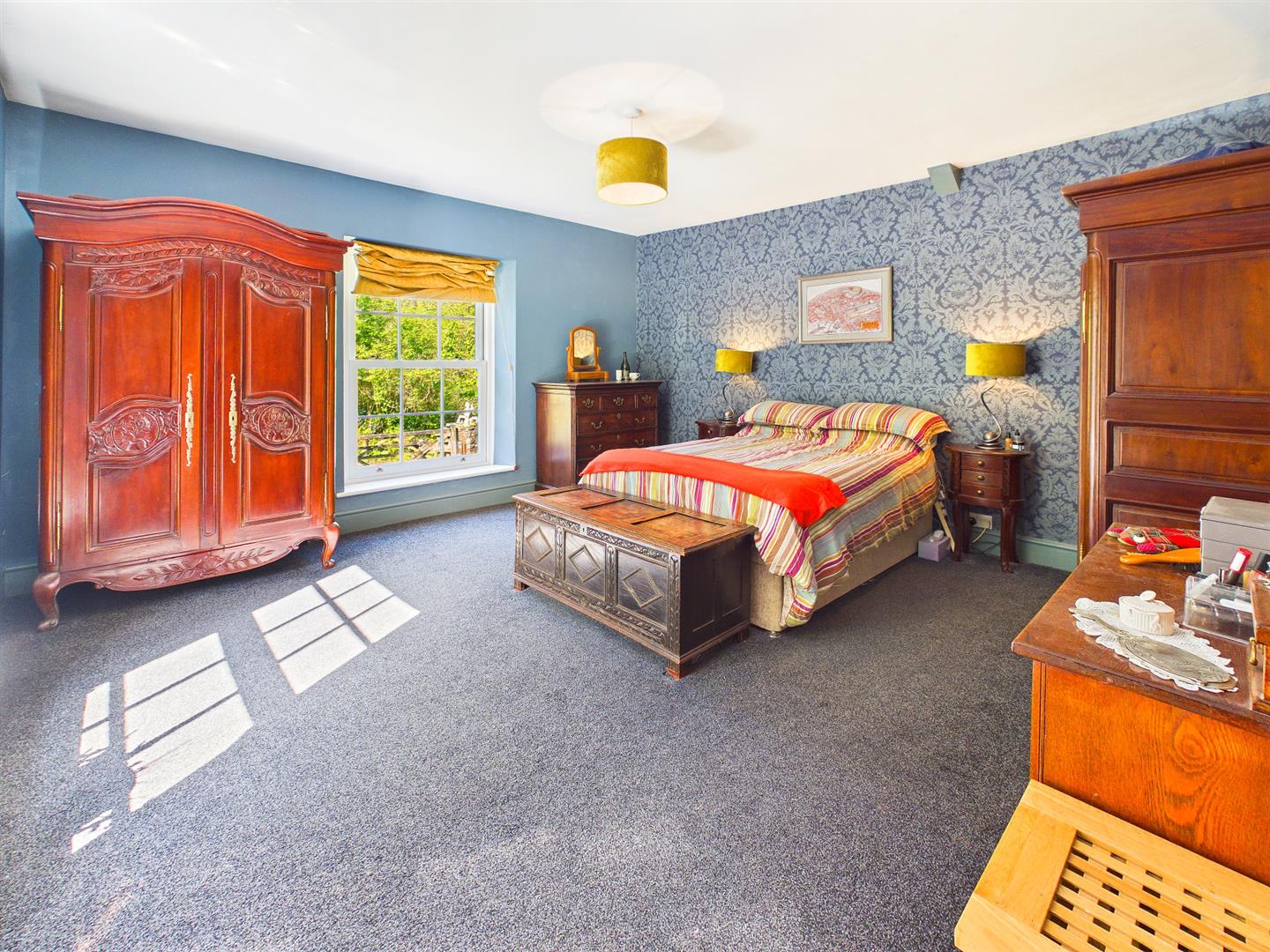 As the dining room the principal bedroom is located in the Georgian part of the property and provides an impressive principal double bedroom with dual aspect windows to both front and side elevations affording beautiful views over the wrap around gardens as well as surrounding woodland.