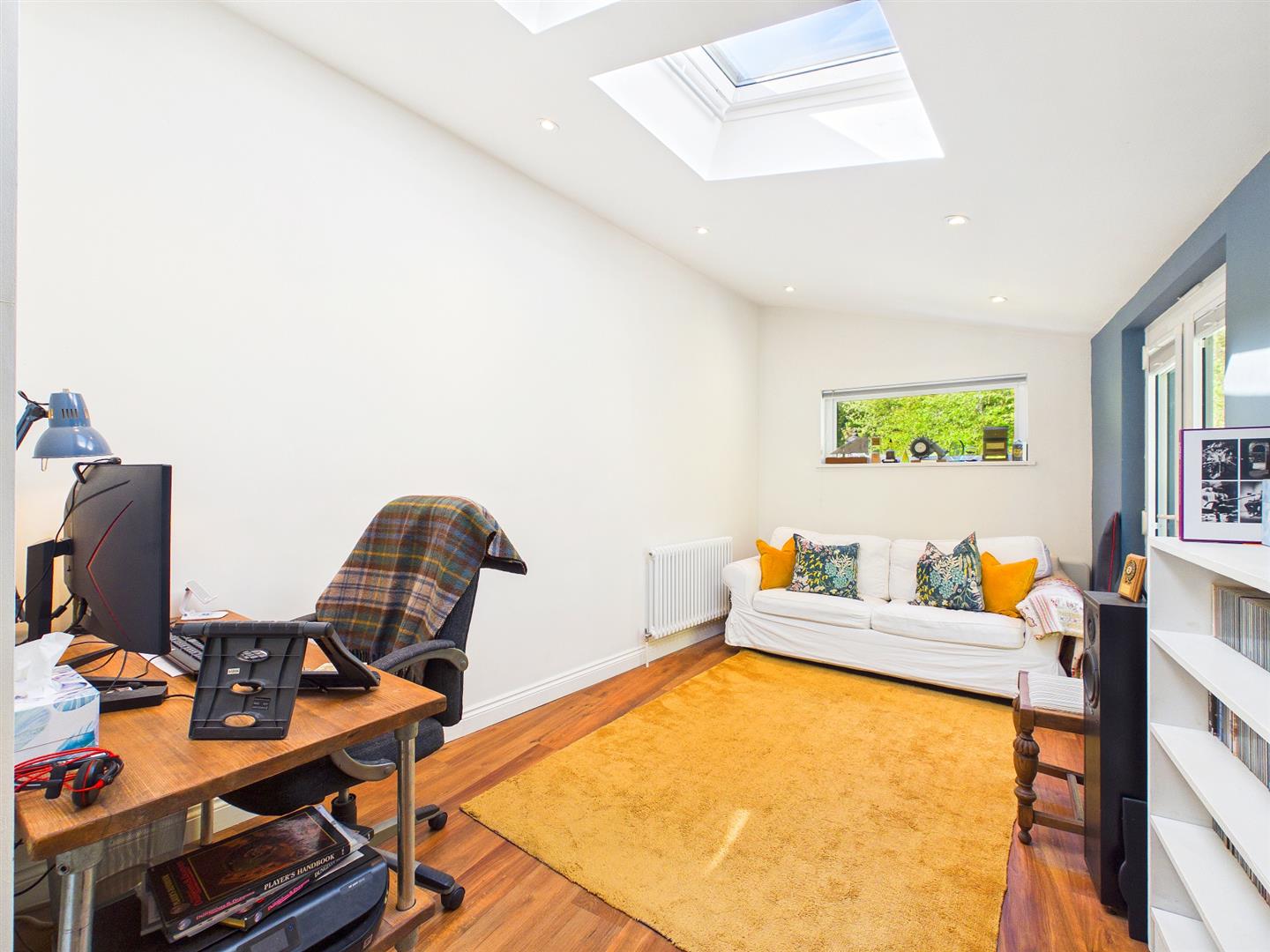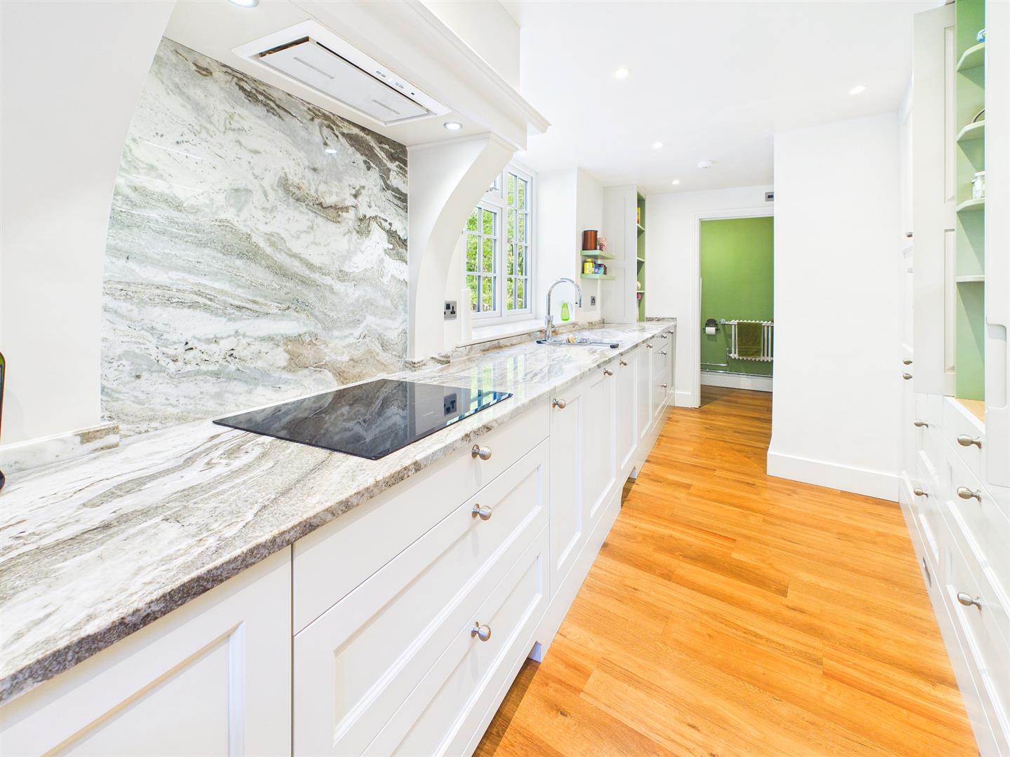 Updated by the current vendors in recent years to provide an individually designed bespoke high end kitchen from Cymru Kitchens, to provide ample quartz worktop with quartz splashback and inset sink with chrome mixer tap. A range of integrated appliances to include four ring Bosch induction hob with extractor hood over, Bosch eye-level electric oven/grill, Bosch dishwasher and a full height fridge/freezer. Further features include a built-in pantry cupboard and window seat. Wood effect luxury vinyl flooring. Dual aspect with large picture window to the rear elevation overlooking the gardens and window to the side elevation. Open archway leads back through to the reception hall and a separate door leads through to:-