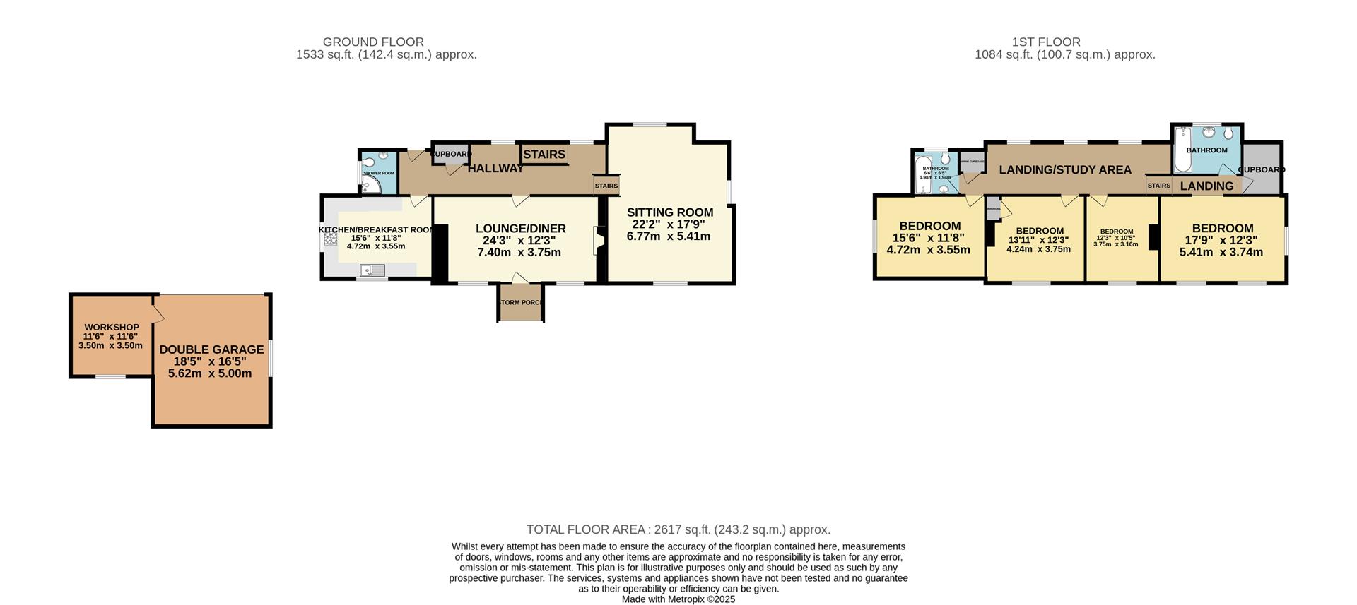 The property has been sensitively updated and enhanced over recent years to provide comfortable family accommodation with impressive entrance hall, attractive lounge/dining room, separate sitting room, family kitchen/breakfast room and shower room to the ground floor. To the first floor is a principal bedroom with its own en-suite bathroom, along with three double guest bedrooms and family bathroom. Furthermore, the property enjoys pleasant gardens around the house with a nearby paddock and outbuilding along with a double garage and parking.