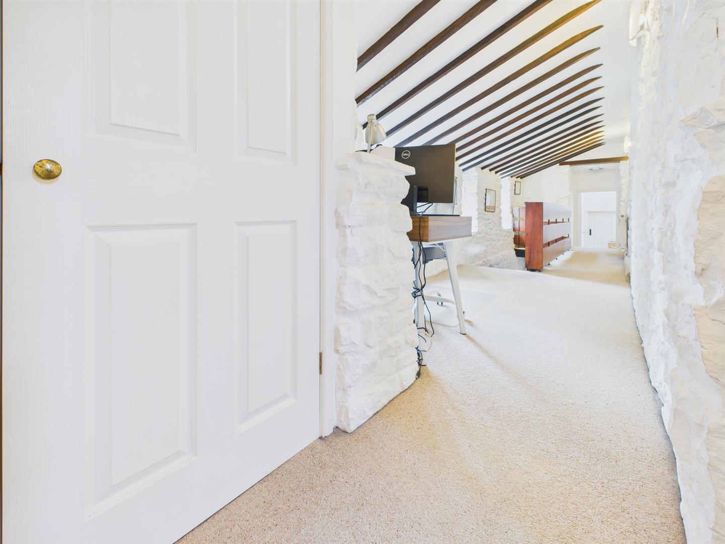 A very spacious landing area with airing cupboard and storage cupboard. Beamed ceiling. Three windows to the rear elevation. Steps down to: -