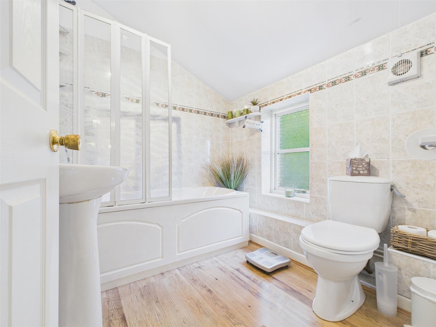 Adjacent to the principal bedroom is the en-suite bathroom comprising of a three-piece suite to include a panelled bath with chrome mixer taps and shower attachment, glass shower screen, combination vanity wash hand basin and WC unit. Chrome heated towel rail. Fully tiled walls and tiled flooring. Window to rear elevation.