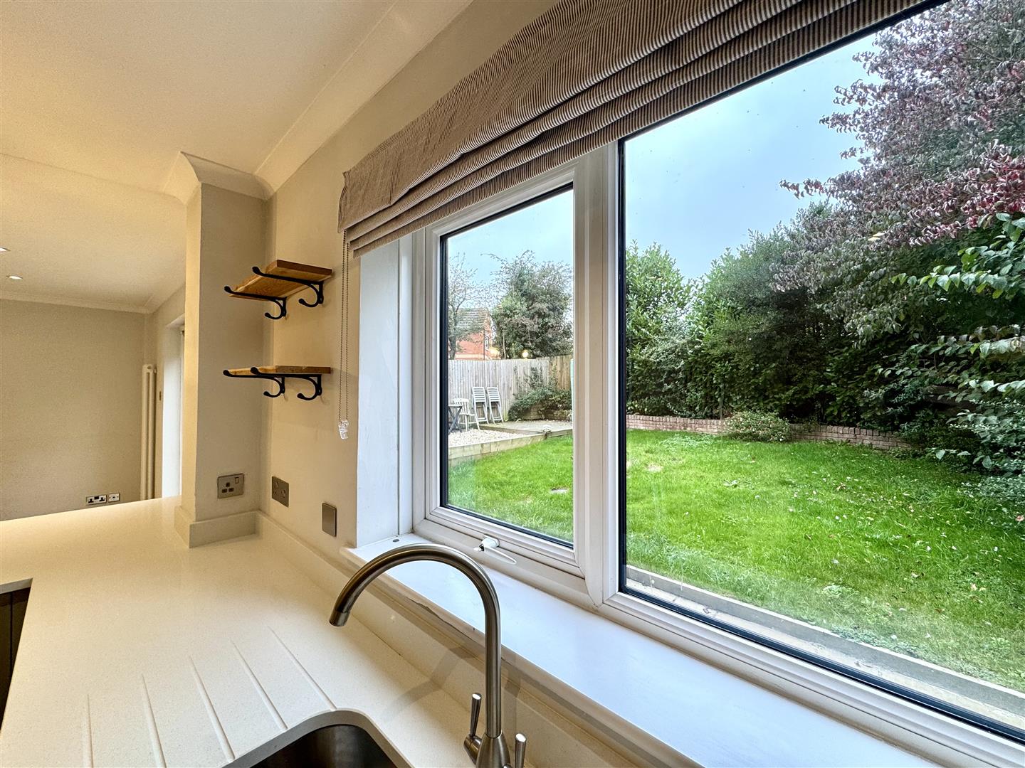 A further range of contemporary fitted units with laminate worktops and tile splashback. Inset sink with mixer tap. Space and plumbing for washing machine. Wall mounted Worcester gas boiler. Pedestrian door to side.