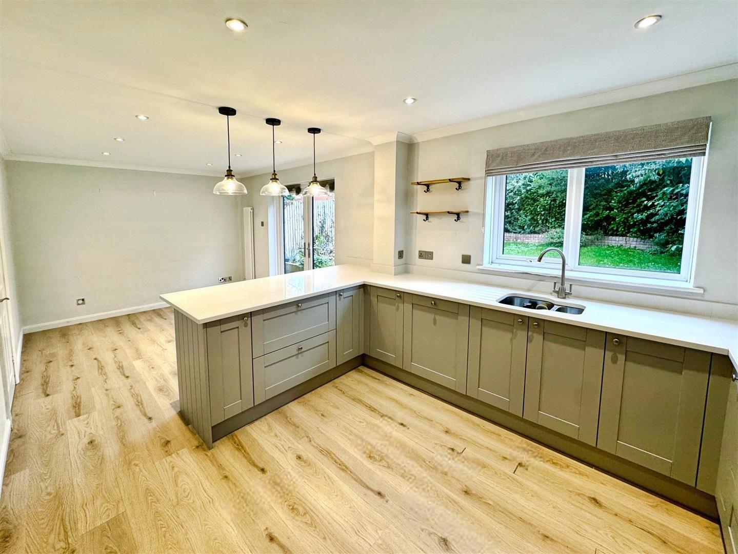 A further range of contemporary fitted units with laminate worktops and tile splashback. Inset sink with mixer tap. Space and plumbing for washing machine. Wall mounted Worcester gas boiler. Pedestrian door to side.