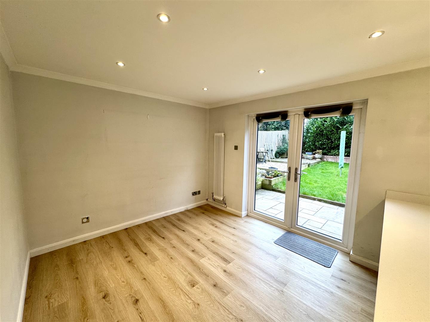 A super open plan space comprising an extensive range of modern kitchen wall and base units with ample granite worktops and splashbacks over with a breakfast bar. Inset sink with drainer and mixer tap. Integrated appliances to include Neff electric induction hob with concealed extractor hood over and tile splashback, eye level double oven, full height fridge/freezer and dishwasher. The dining area has French doors leading out to the rear garden. Wood effect laminate flooring. An open archway from the kitchen area leads to:-