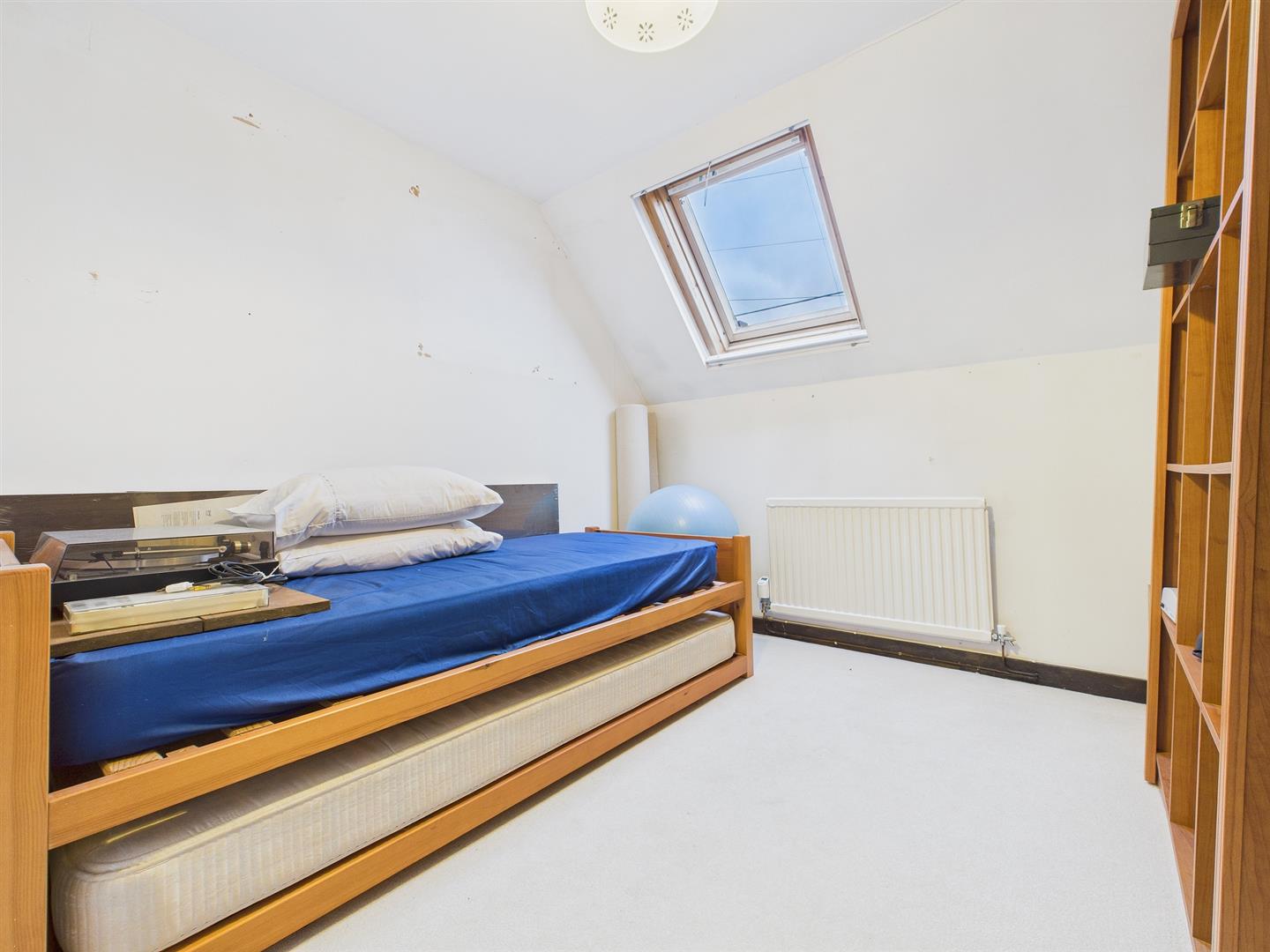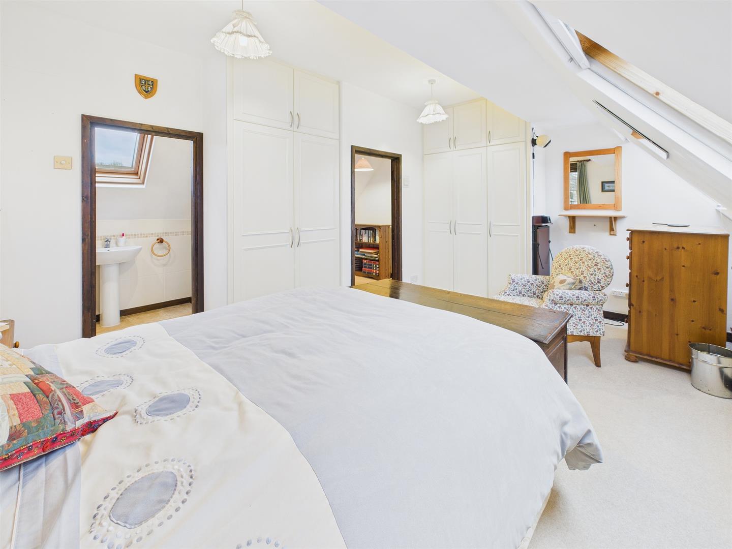 With two Velux rooflights to front and window to side. Range of built-in wardrobes. Access to: -
