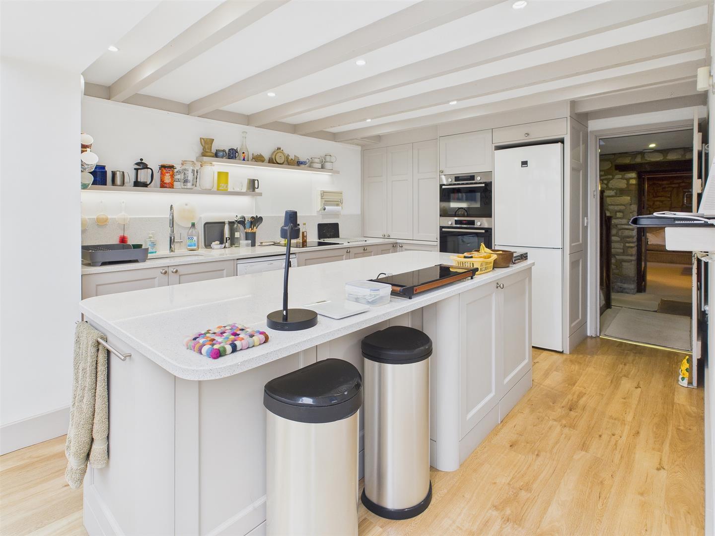 Tastefully updated with a contemporary range of bespoke units by well-renowned local kitchen company Cymru Kitchens, with large central island and drinks fridge. Quartz work surfacing and useful butler’s pantry. Inset one and a half bowl sink unit with Quooker hot and cold mixer tap. Four ring induction hob and integrated eye-level twin ovens. Integrated washing machine along with space for dishwasher and fridge/freezer. Open plan to: -