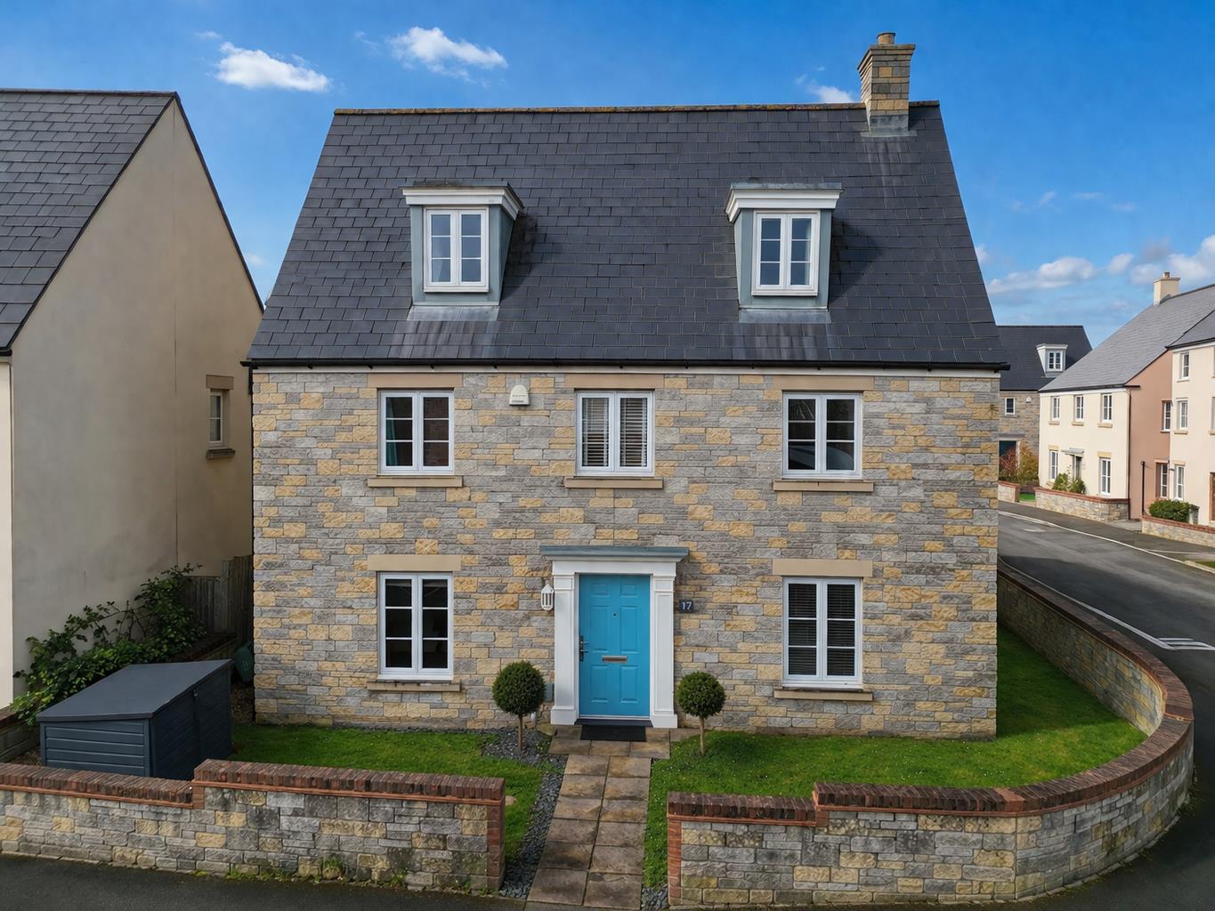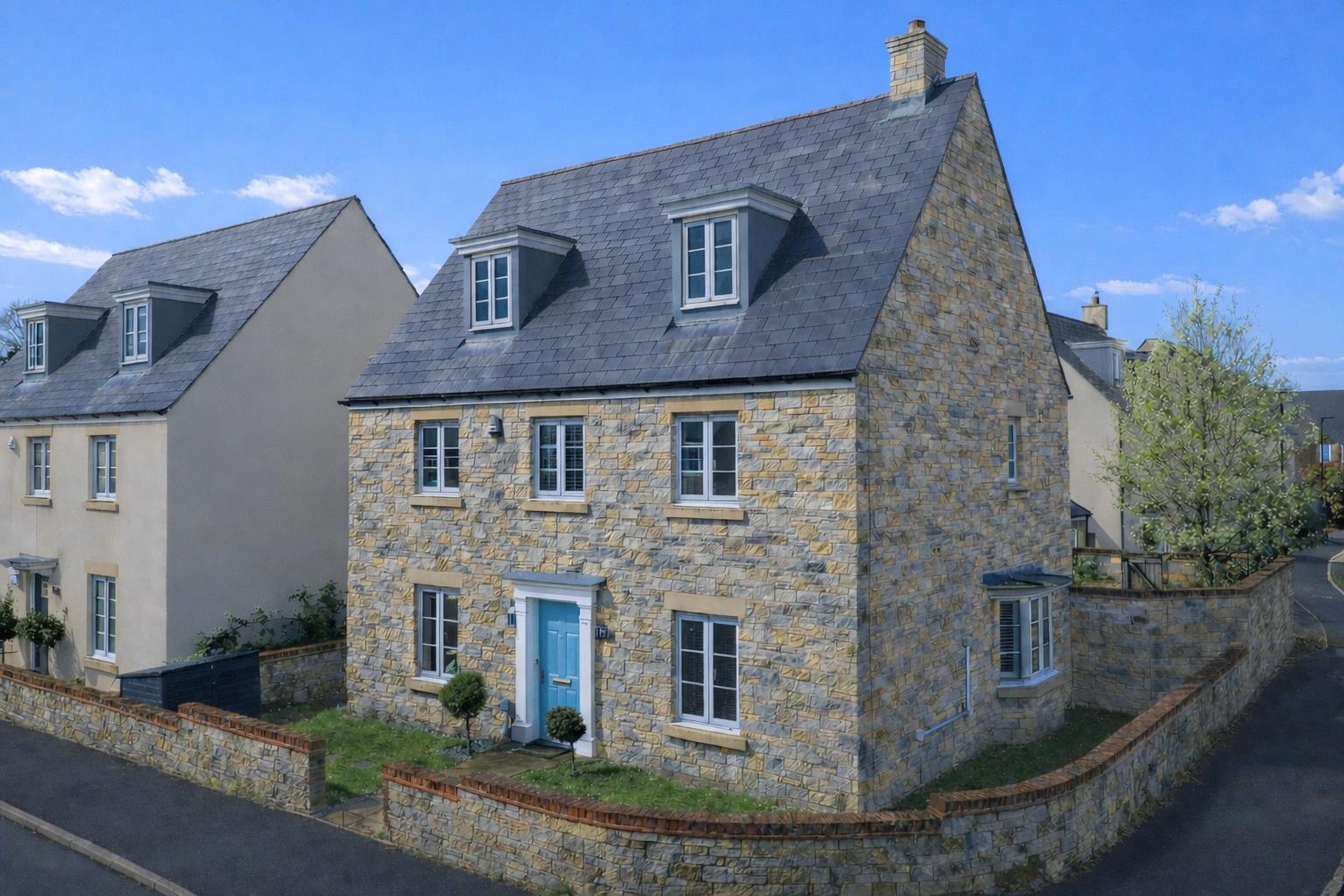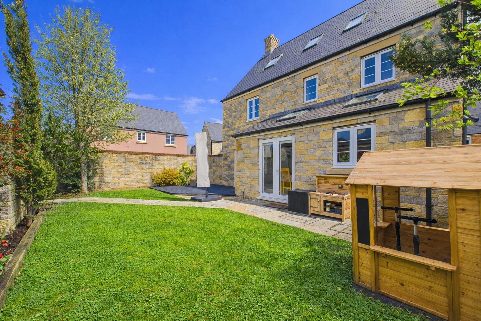 The front garden is enclosed by a lovely stone wall with a pedestrian path to the front door with lawn to either side. The private rear garden is enclosed by stone wall and fencing with a decked area which is perfect for outside entertaining, lawned areas and a range of mature trees and shrubs. Gated access leading to the parking and garage.