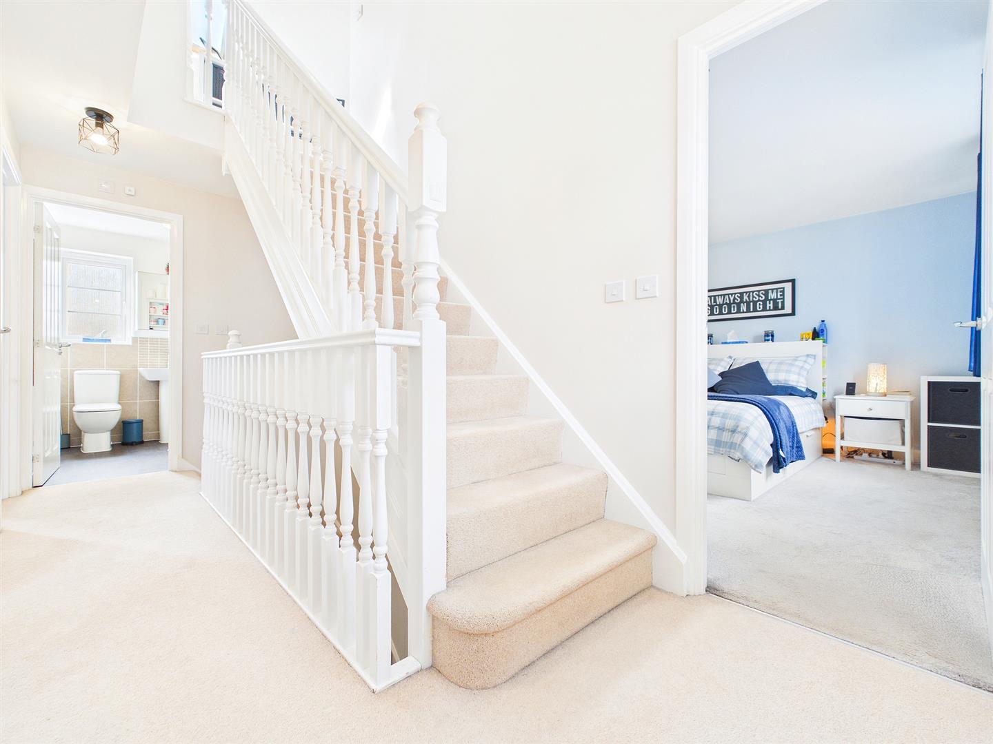 A front door leads into the reception hall with wooden effect flooring and stairs to first floor. Understairs storage cupboard.