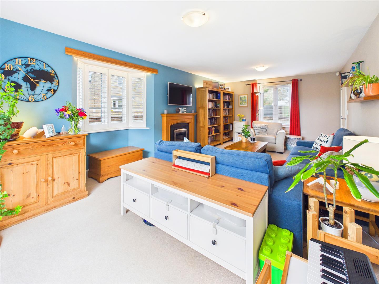 A lovely spacious and light room with windows to front and side elevations and French doors to the rear garden. Feature fireplace with oak surround and granite hearth.