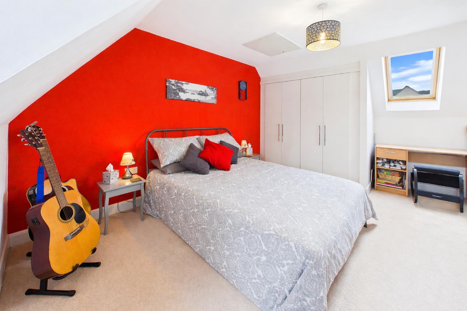A spacious double bedroom with built-in wardrobes. Loft access. Roof light to rear elevation and window to front elevation.