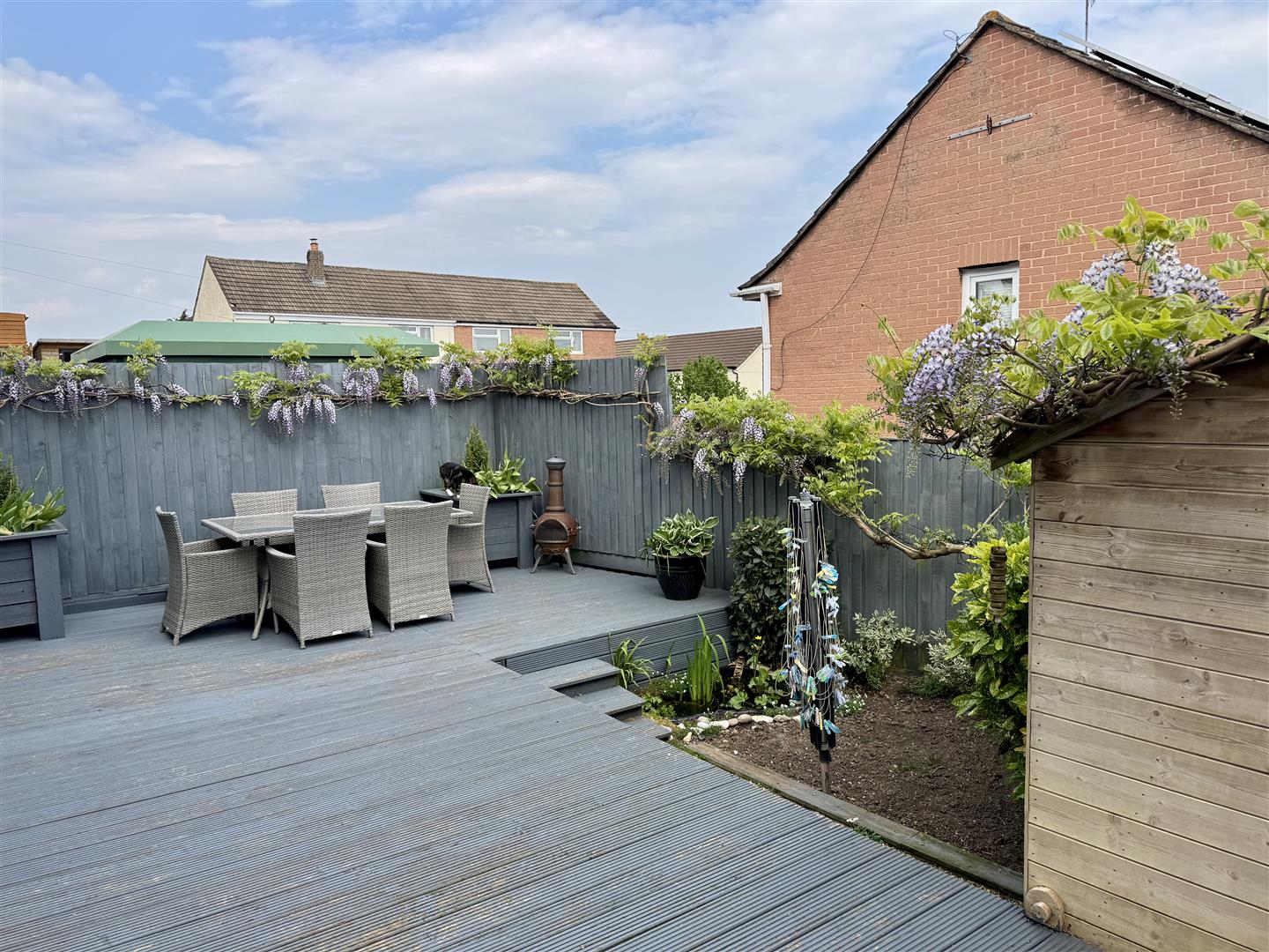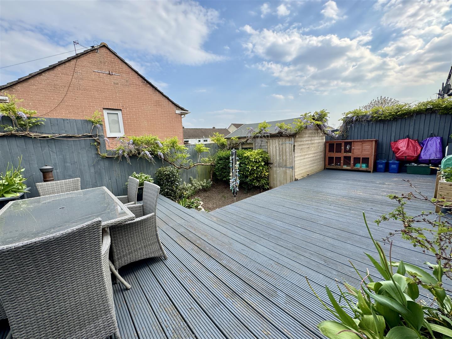 To the rear is a spacious south-easterly garden mainly laid to decking complete with shed at the rear.