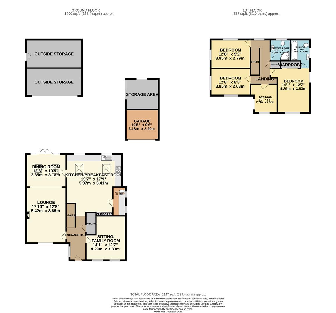 A gravel driveway and turning area provides parking along with access to the detached single car garage with up and over door. Immediately behind the garage there is a separate storage area.