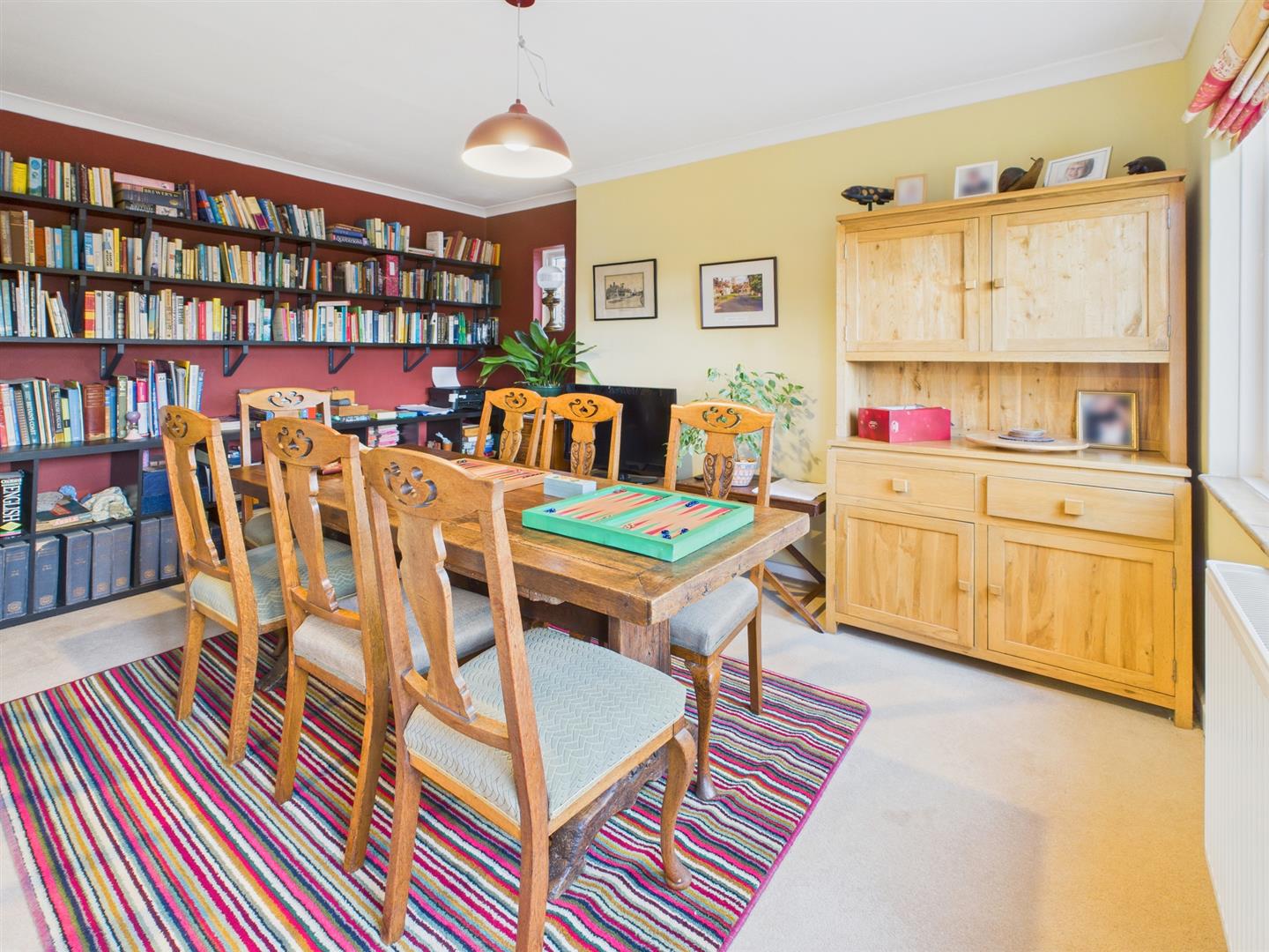 A spacious second reception room, currently used as a formal dining room, with two windows front elevation.