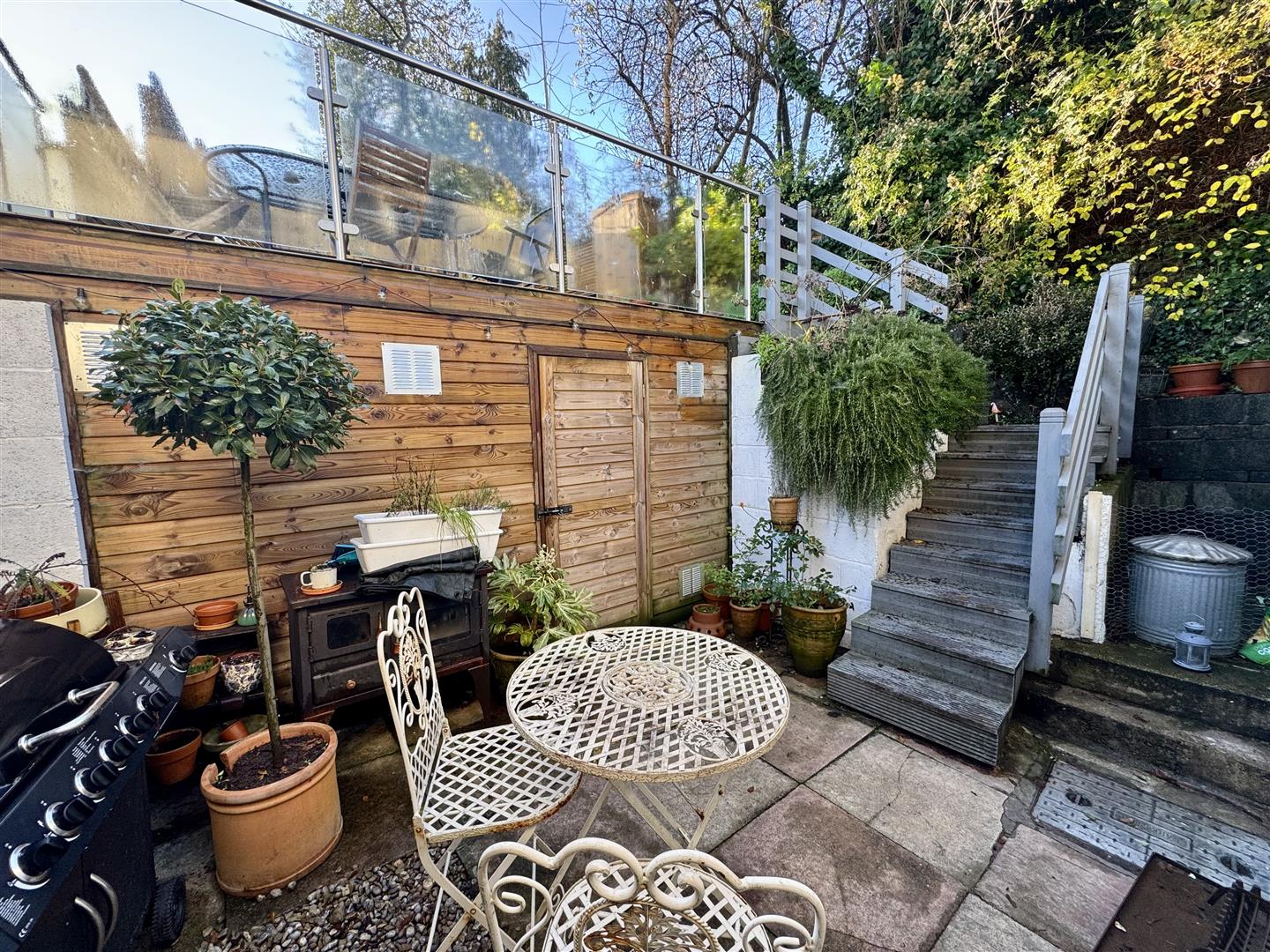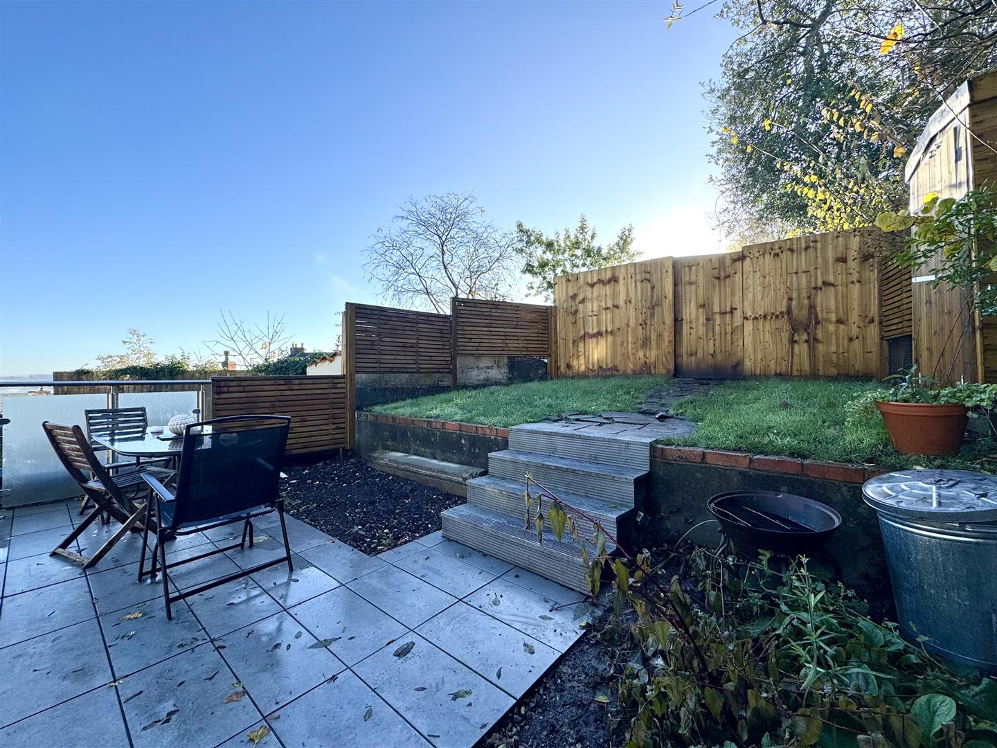 To the rear, immediately leading off from the kitchen is a charming courtyard area, also giving access to a useful garden store room. Above this is a glass balustrade terrace giving access to the pleasant lawned garden, noting that the garden itself enjoys a southerly aspect.