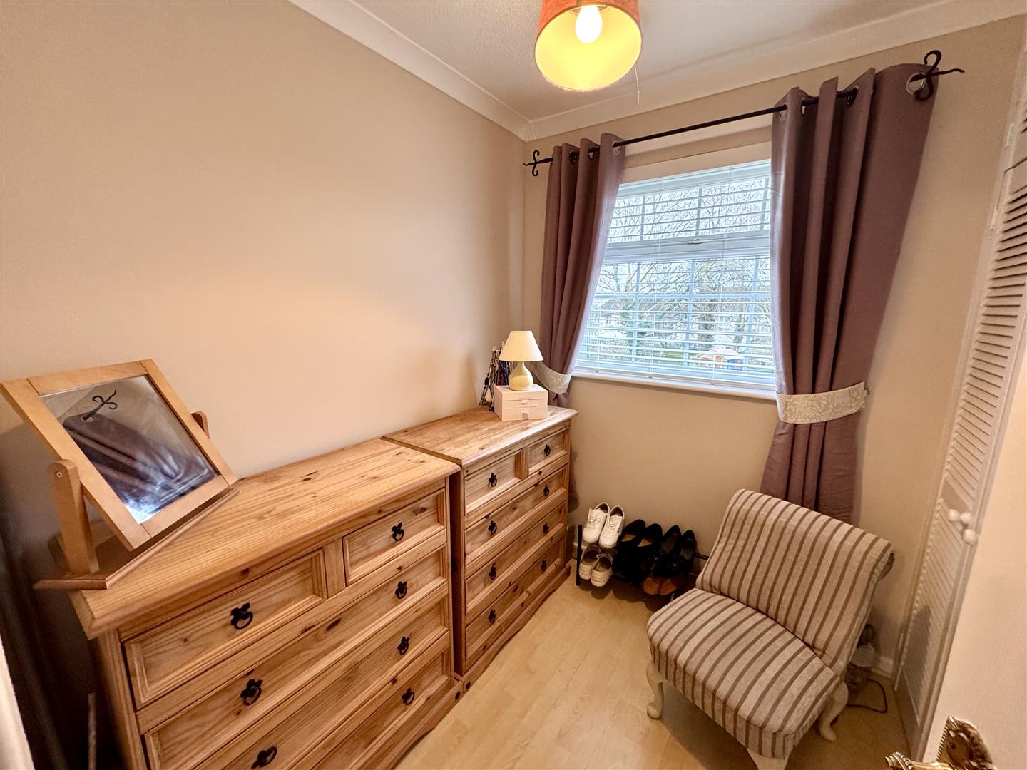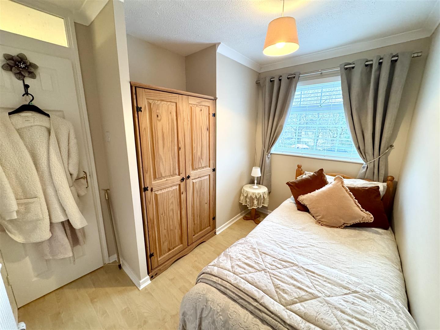 A single bedroom with fitted wardrobe and window to rear elevation.