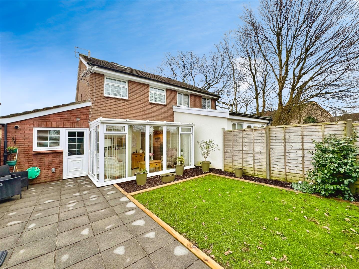 A tarmac pedestrian pathway leads to the front entrance of the property. The rear garden comprises a low-maintenance, level private garden enjoying a south-westerly sunny aspect, mainly laid to a paved patio area, along with level area laid to lawn. The rear garden is bordered by an attractive range of mature plants and shrubs, fully enclosed by timber fencing to all sides.