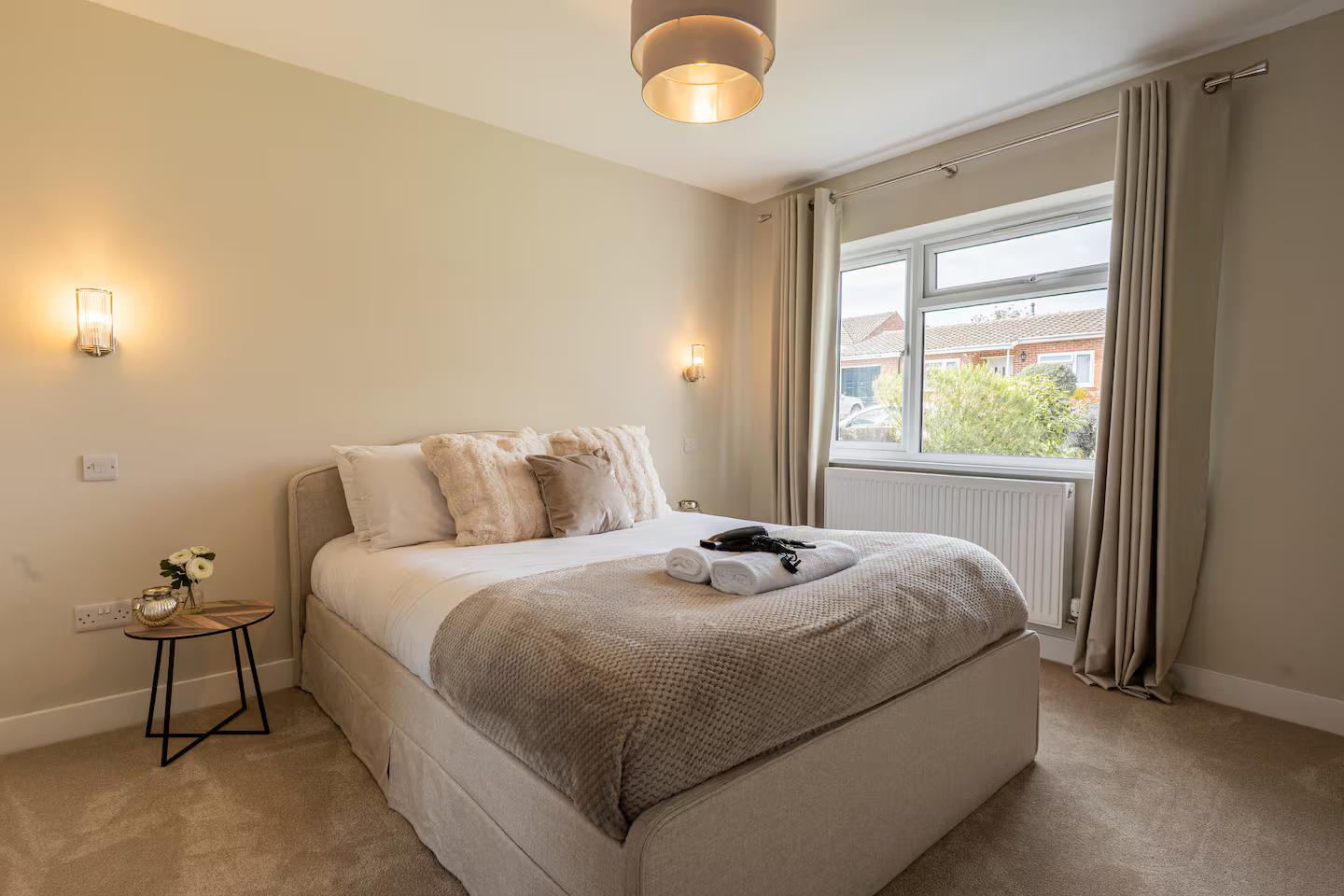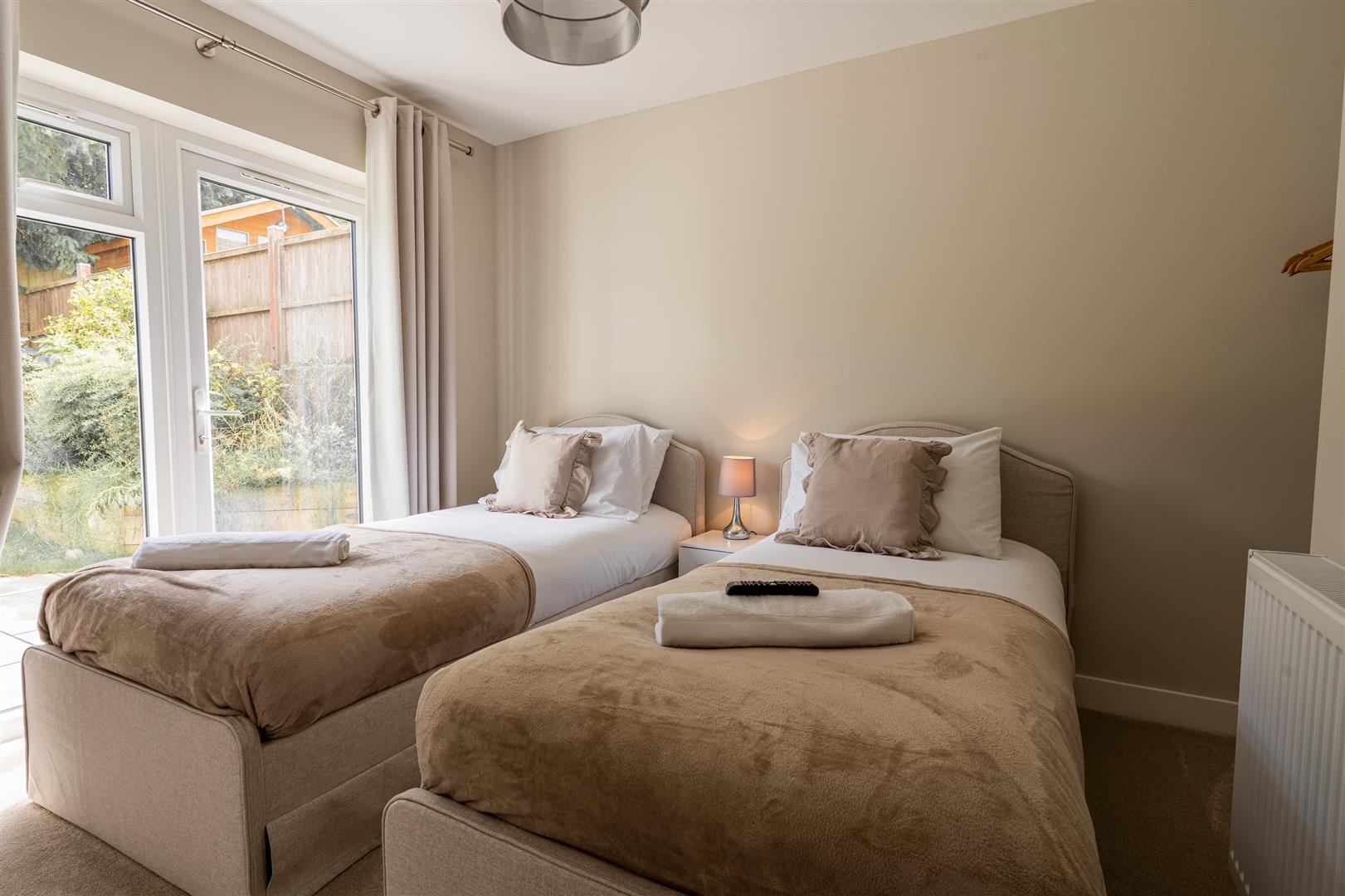Double bedroom with full-height window to the rear and patio door leading directly out to the rear garden, flooding lots of natural light.