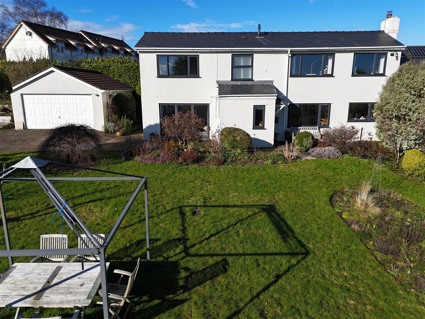 To the front the property is accessed via its own driveway with parking for several vehicles and detached double garage with up and over door.