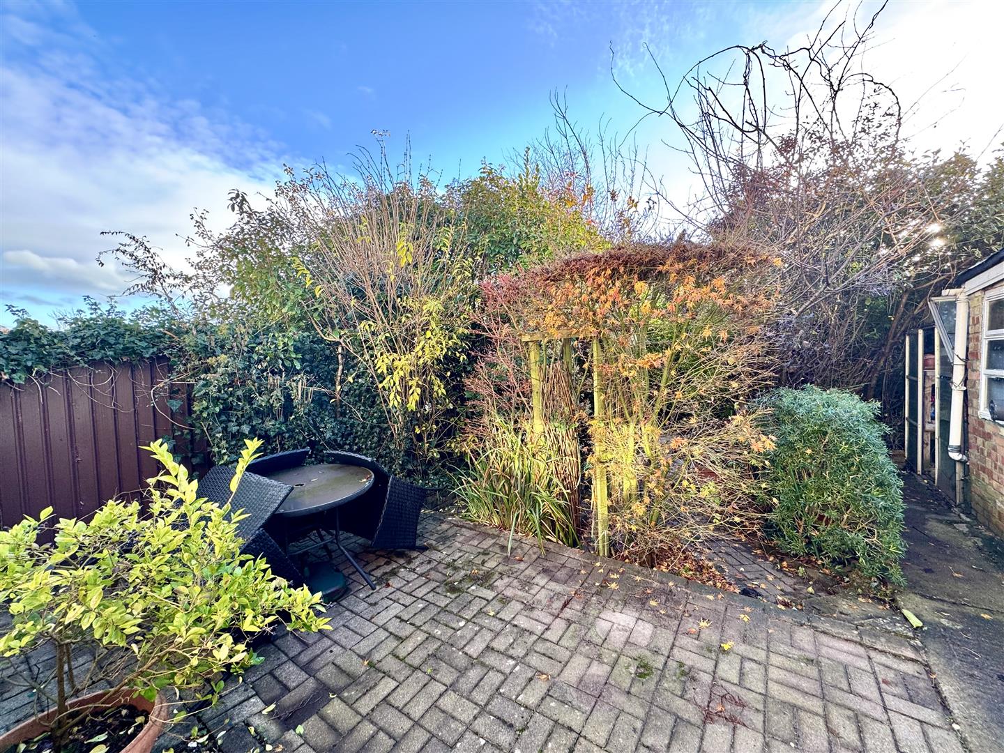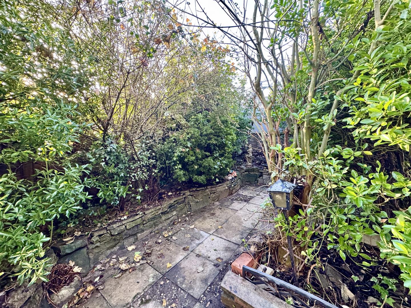 To the front there is an area laid to lawn with mature hedging. To the rear a landscaped mature garden which is currently overgrown, mostly laid to slabs with a patio area.