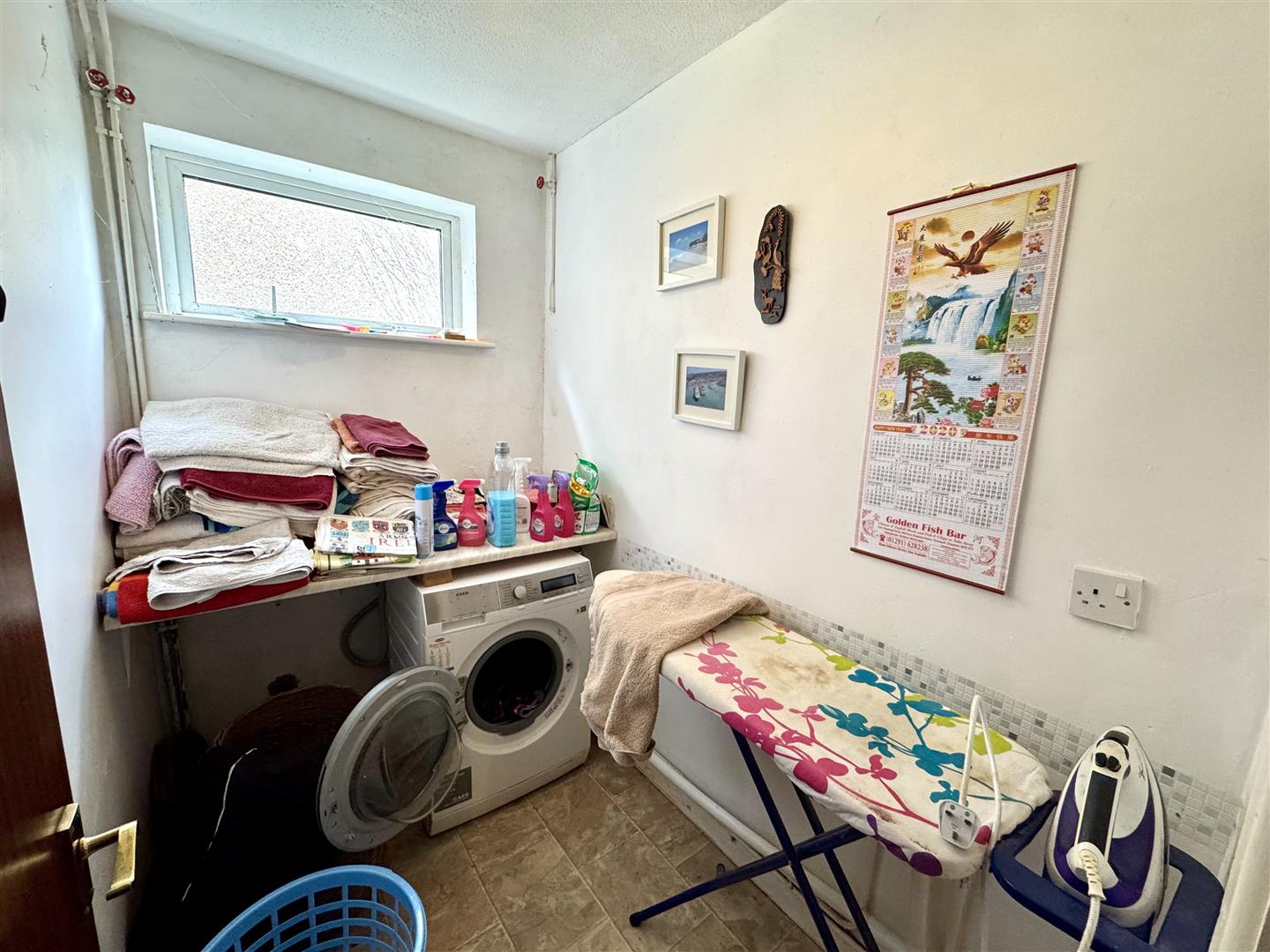 Window to side elevation, tiled floor, space and plumbing for white goods.