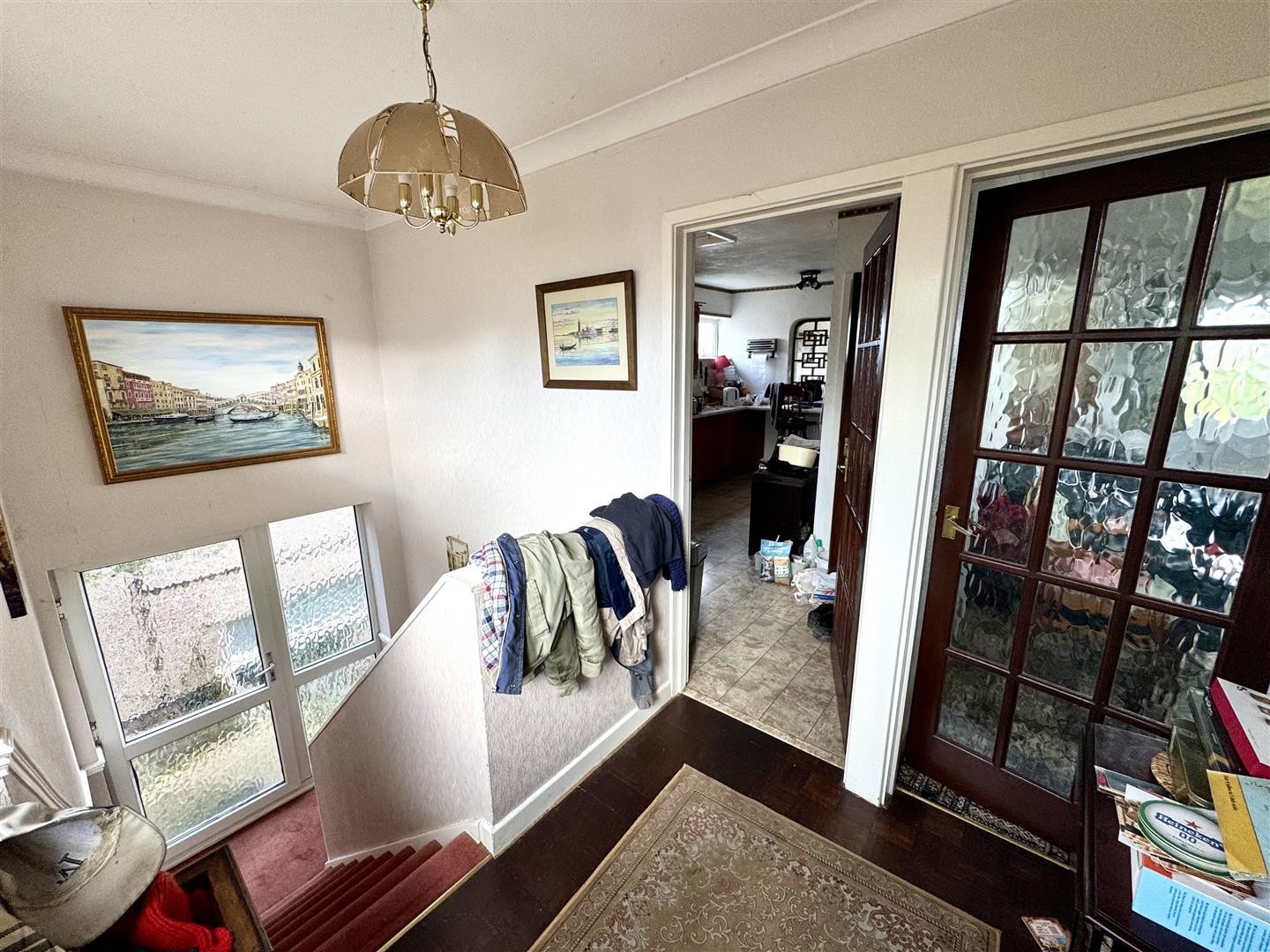 uPVC door and window to the front elevation. Feature parquet flooring with stairs leading down to the first floor and then further down to the lower ground floor.