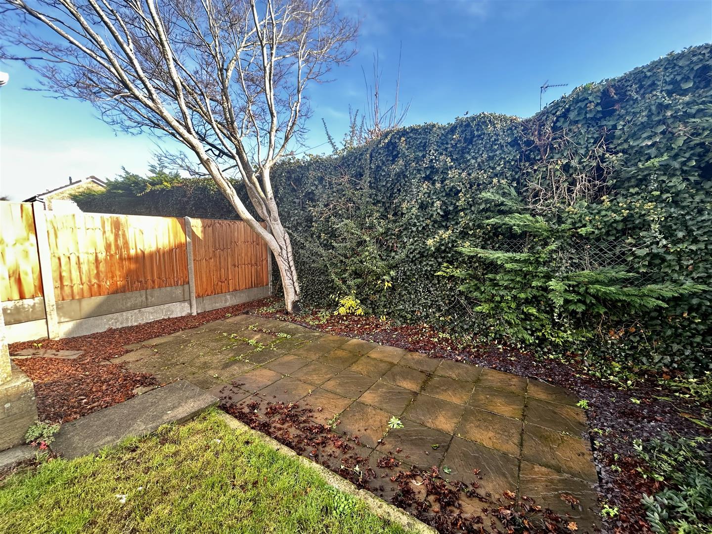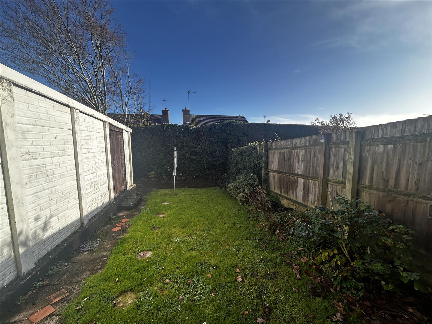 Enclosed Rear Garden with Pathway, Lawn and Terrace Area, Shed and Side Gate Leading to Front Elevation.