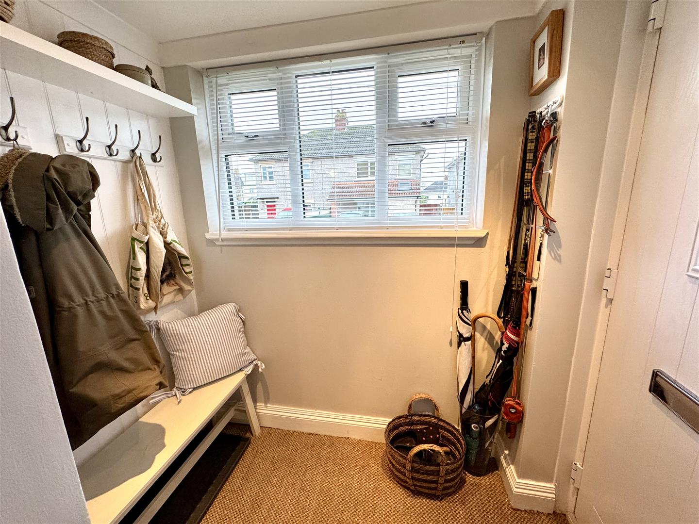 Front door leads into a really convenient space perfect for coats and shoes. Window to front aspect. Internal wooden glazed door leading through to: -