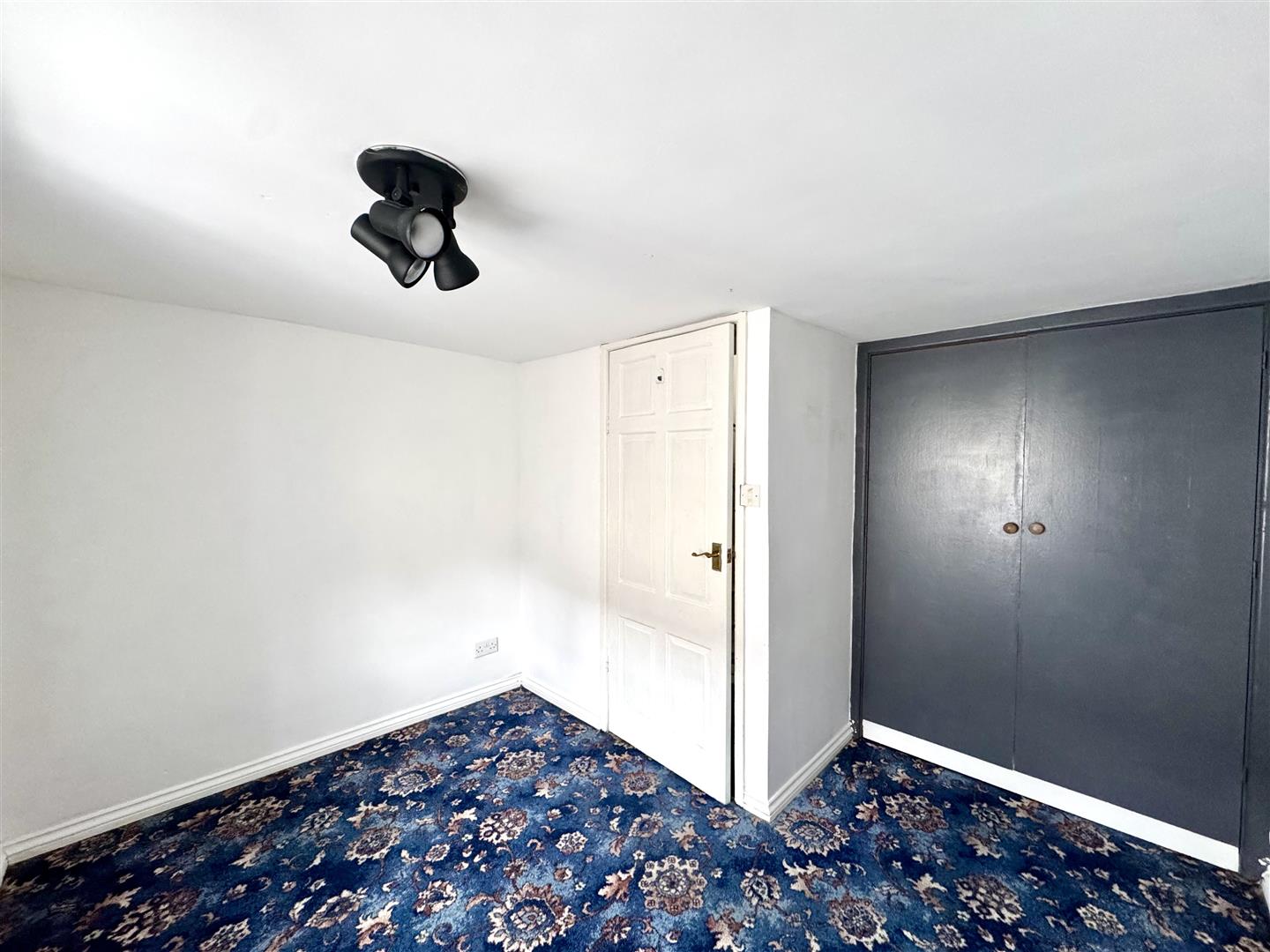 A double bedroom with sash window to front elevation. Fitted wardrobe with inset shelving.