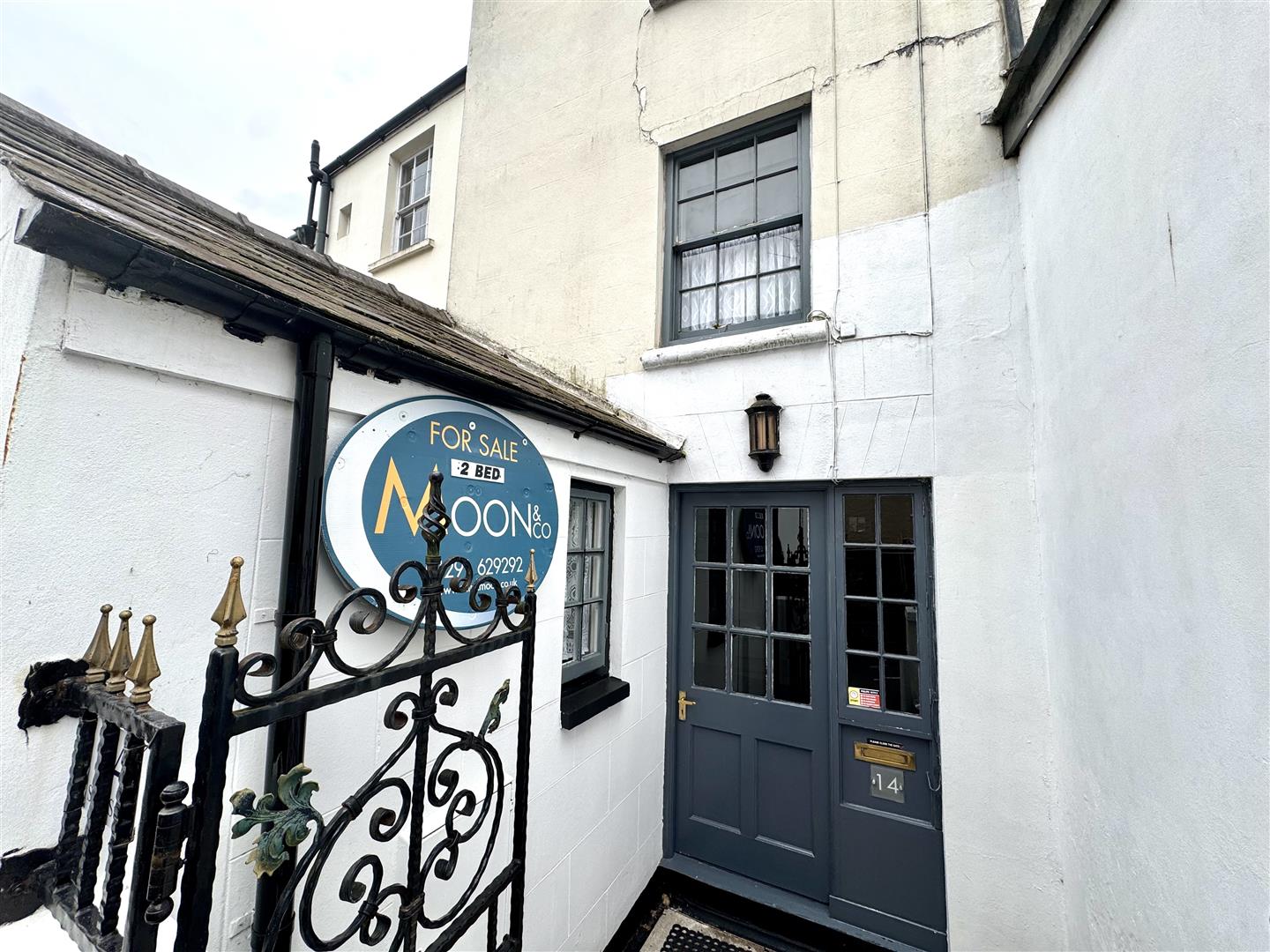 To the front, the wrought iron gate leads to a small courtyard. On road permit parking available, approximately £60 per annum through Monmouthshire County Council.
