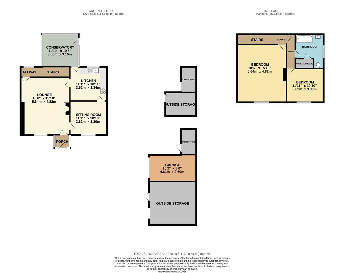 Comprising a three-piece suite to include double width walk-in shower cubicle with tiled surround and electric shower unit, pedestal wash hand basin, and low-level WC . Half-tiled walls. Built-in airing cupboard housing the immersion tank. Window to the side elevation.