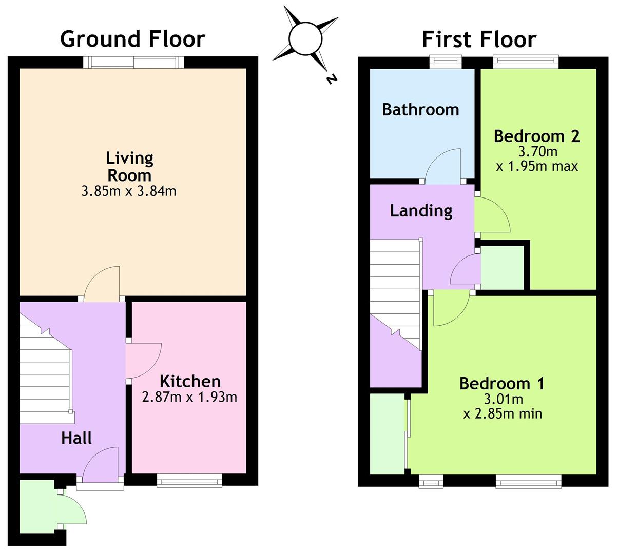 Offered to the market with the benefit of no onward chain, this pleasant end-terrace property is situated within a popular location at the end of a quiet cul-de-sac. Internally the property comprises to the ground floor: reception hall with access to the modern kitchen and living/dining room with stairs to the first floor where there are two double bedrooms and a bathroom. Outside the property benefits from a private lawned rear garden with gated access to the communal car park where there are two designated spaces for the property.