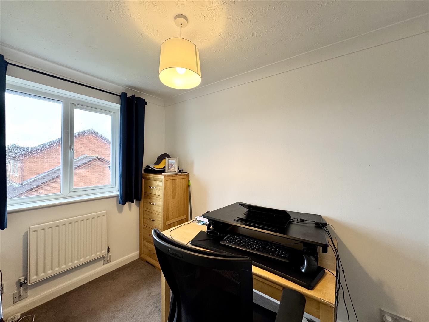 To the front of the property is a lawned area and pedestrian pathway leading to the front entrance porch and storage area. The rear garden is mainly laid to lawn with a patio area and garden shed. Gated pedestrian access leads out to the communal car park where there are two designated car parking spaces.