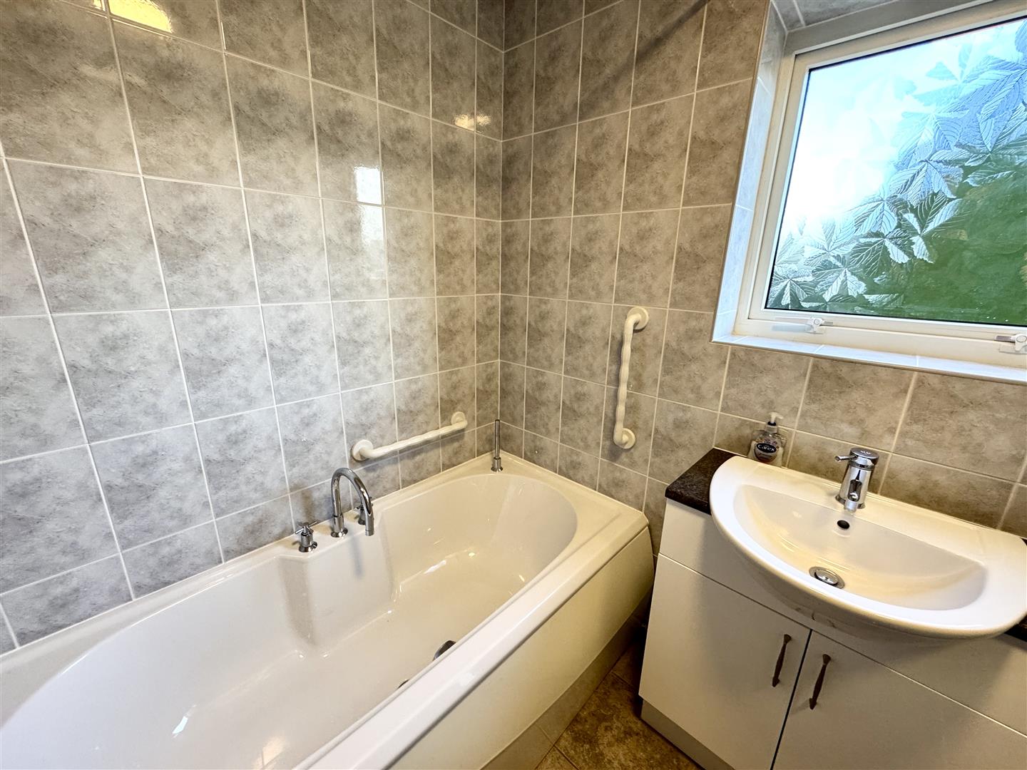 A two-piece suite to include panelled bath and wash hand basin with vanity unit. Fully tiled walls. Window to rear elevation.