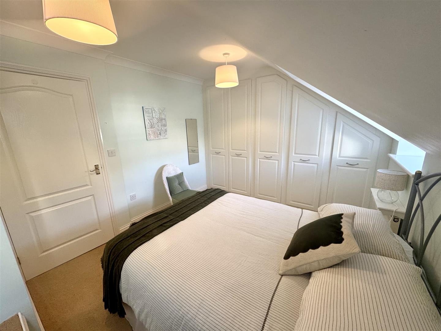 A very well proportioned double bedroom with window to the rear aspect enjoying uninterrupted views over the rear garden and beyond. Fitted wardrobes, bedside cabinets and over bed storage units. Door to:-