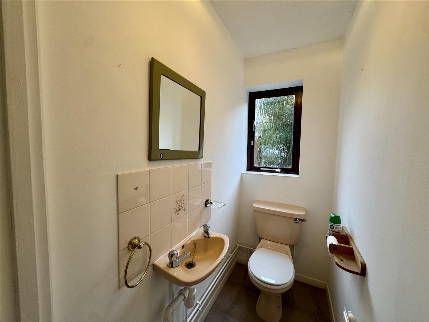 Comprising a two-piece suite to include low-level WC and wall-mounted wash hand basin with chrome taps and tiled splashback. Window to side elevation.