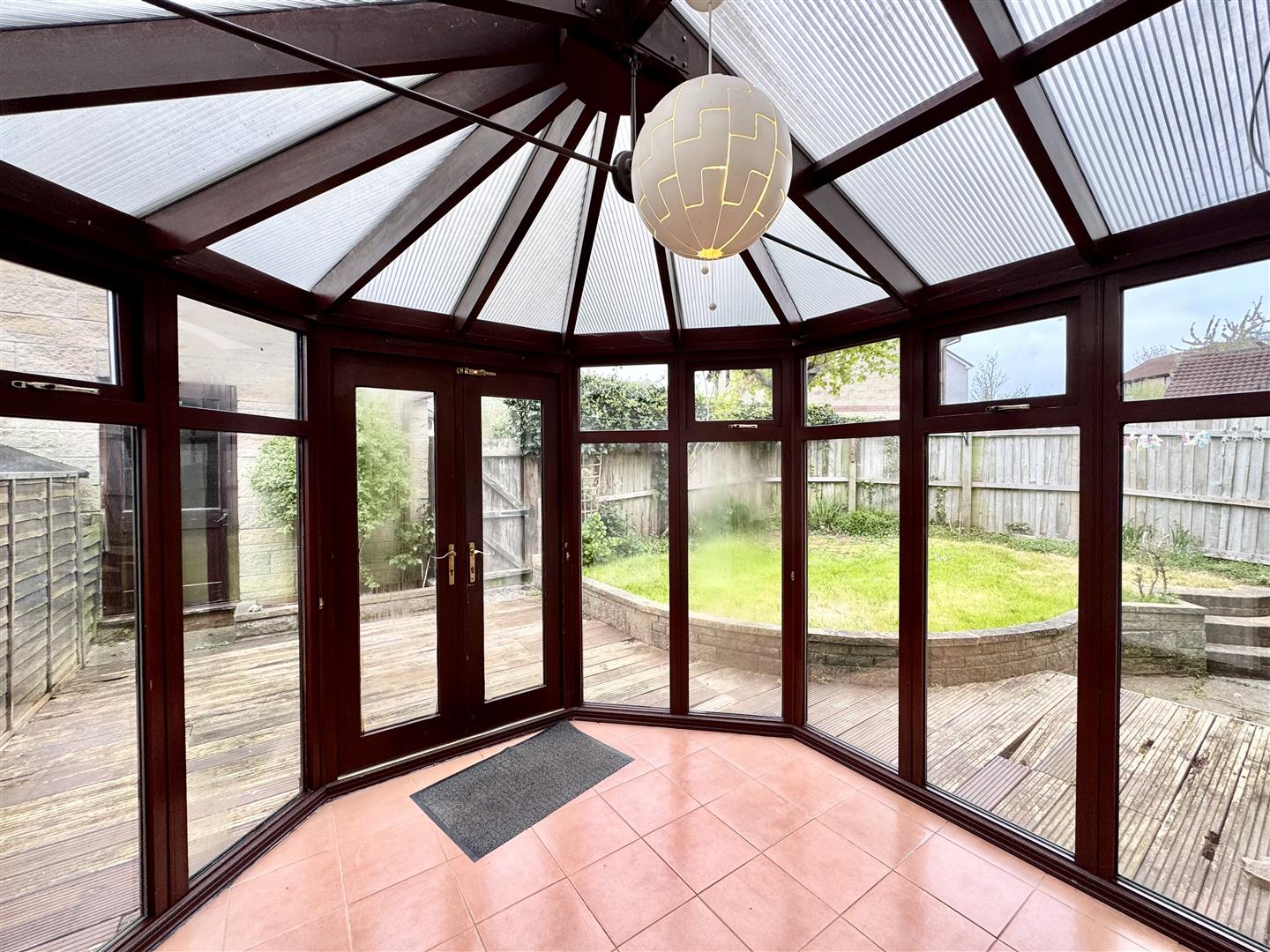 A really lovely sociable room with ceramic tiled floor, full-length windows and French doors leading out to the garden.