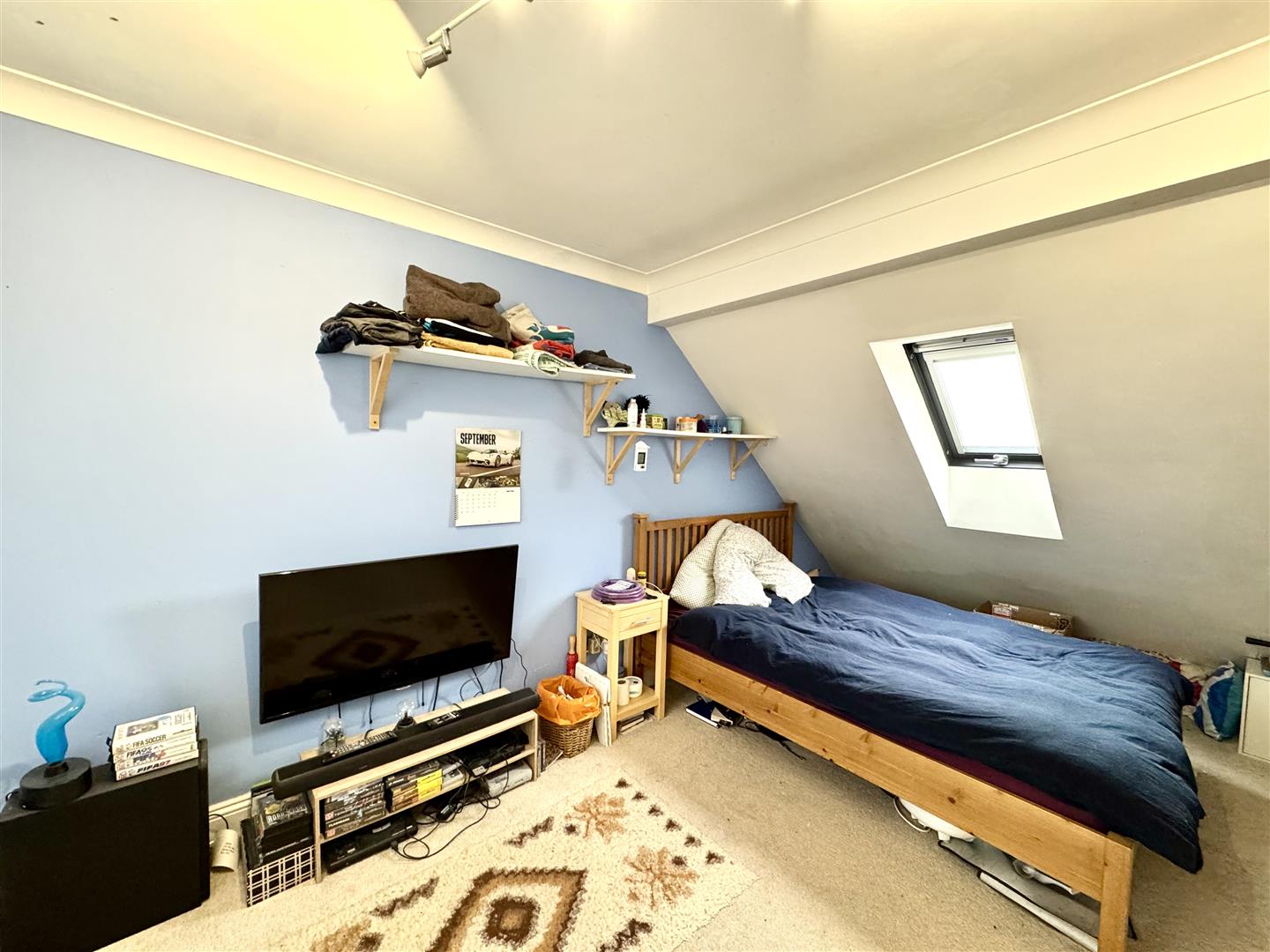 A spacious double bedroom with window to rear elevation and Velux rooflight. Door to: -