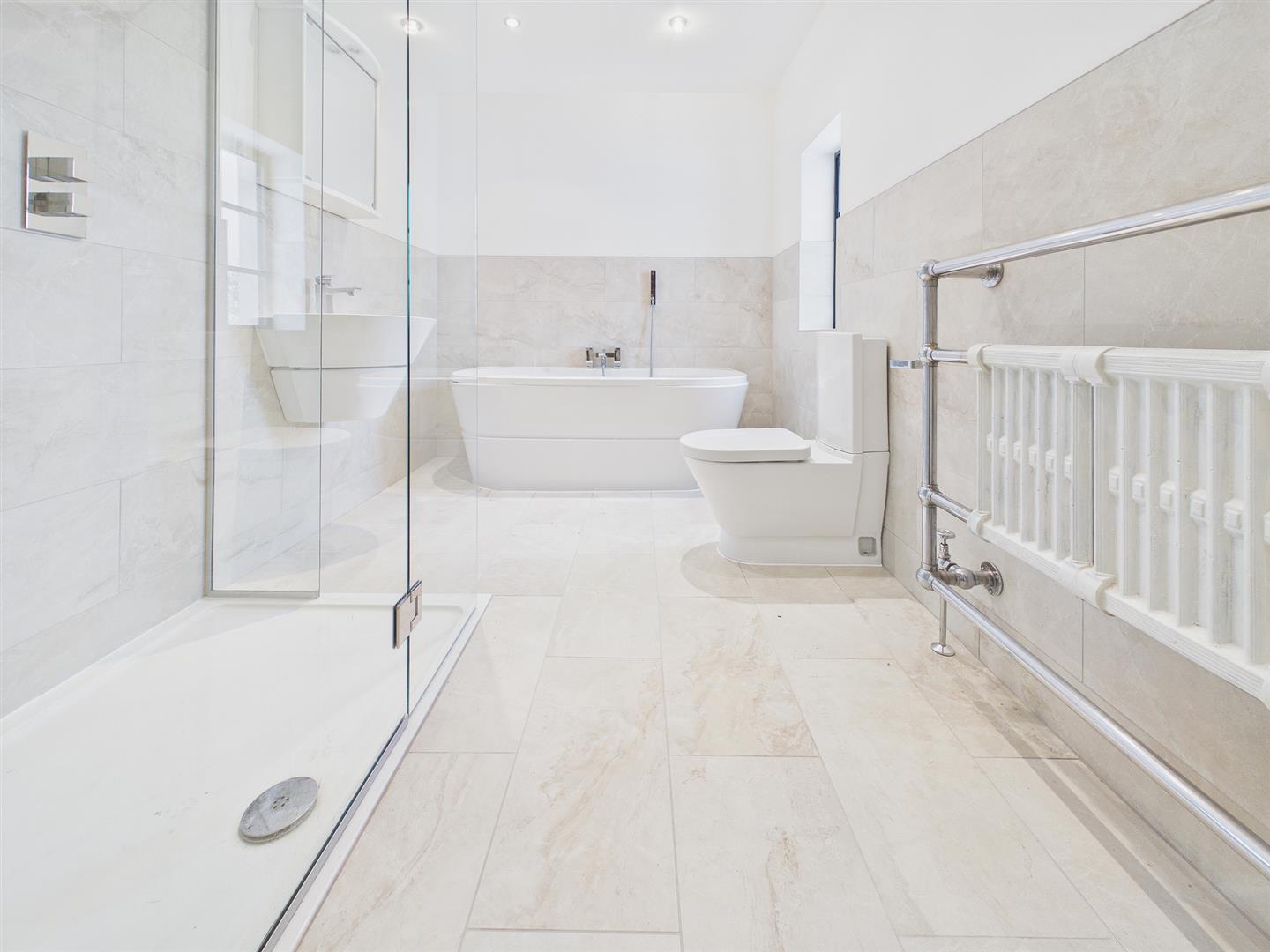 To the first floor the stylish stairway passes a return window, a lovely feature, then leading to a large generously portioned landing. The principal bedroom is located at the front of the property with windows to front and rear and leading off is a well-appointed en-suite bathroom with corner bath, shower, wash hand basin and WC with attractive Travertine flooring and wall finishes with window to front. To the rear is the principal guest bedroom a well-proportioned bedroom with windows to the rear elevation and a well-appointed and updated en-suite with step-in shower, low level WC and wash hand basin with window to side elevation. There are two further double bedrooms to this floor with windows for bedroom three to the front and bedroom four to the rear, also complementing these two bedrooms is the principal bathroom recently updated with free standing bath, step-in shower, low level WC and wash hand basin with window to front.