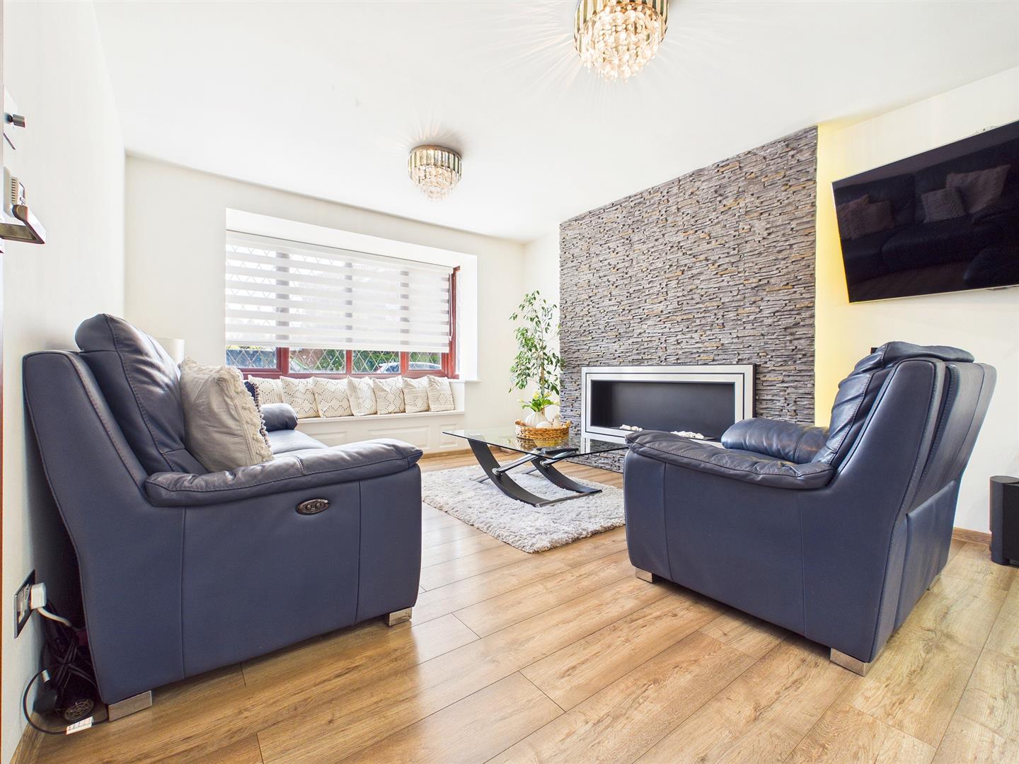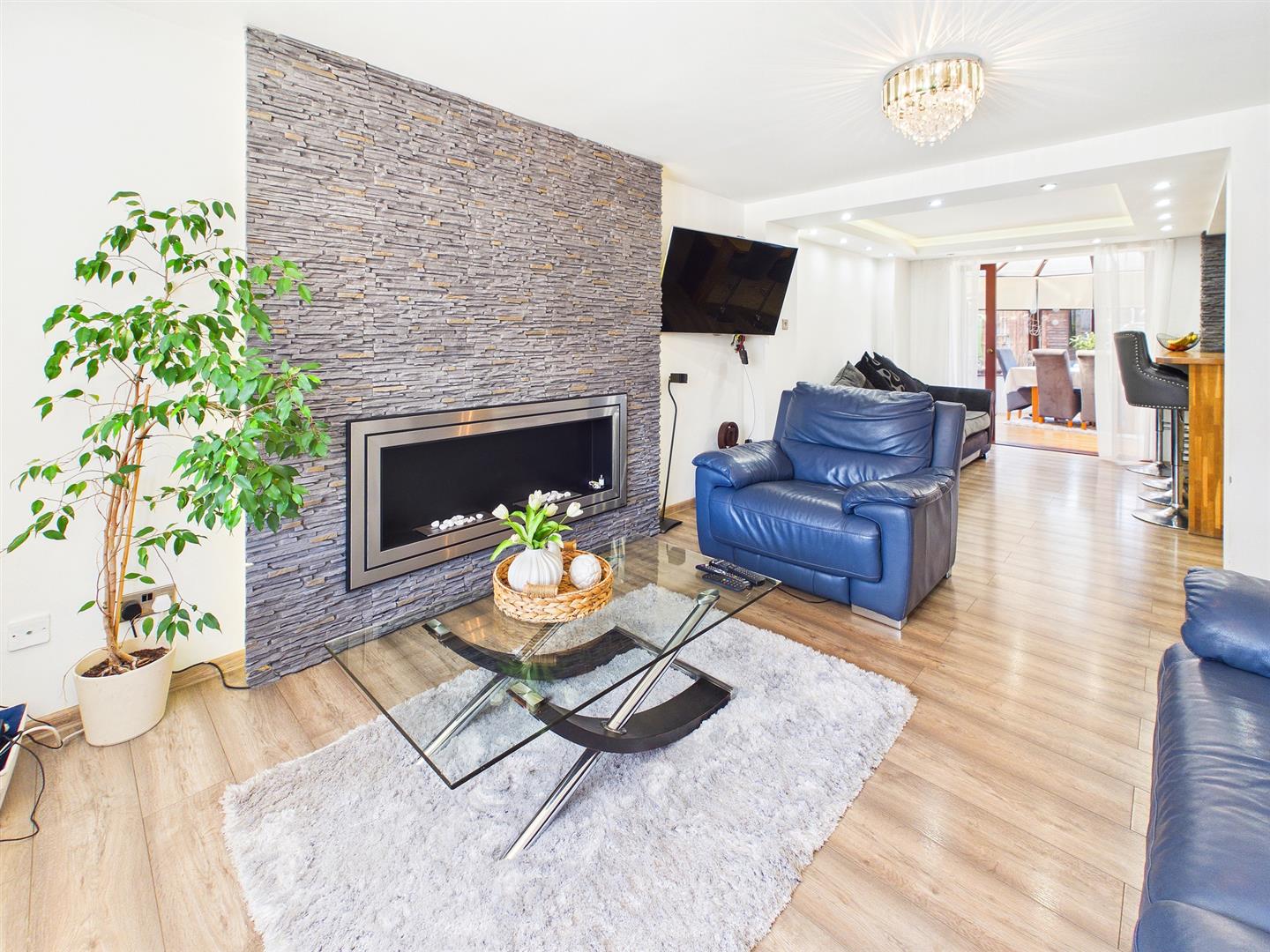 A well proportioned front reception room enjoying a feature electric fire. Bay window to the front elevation with window seat enjoying a southerly aspect. Wood effect laminate floor with underfloor heating. Open through to:-