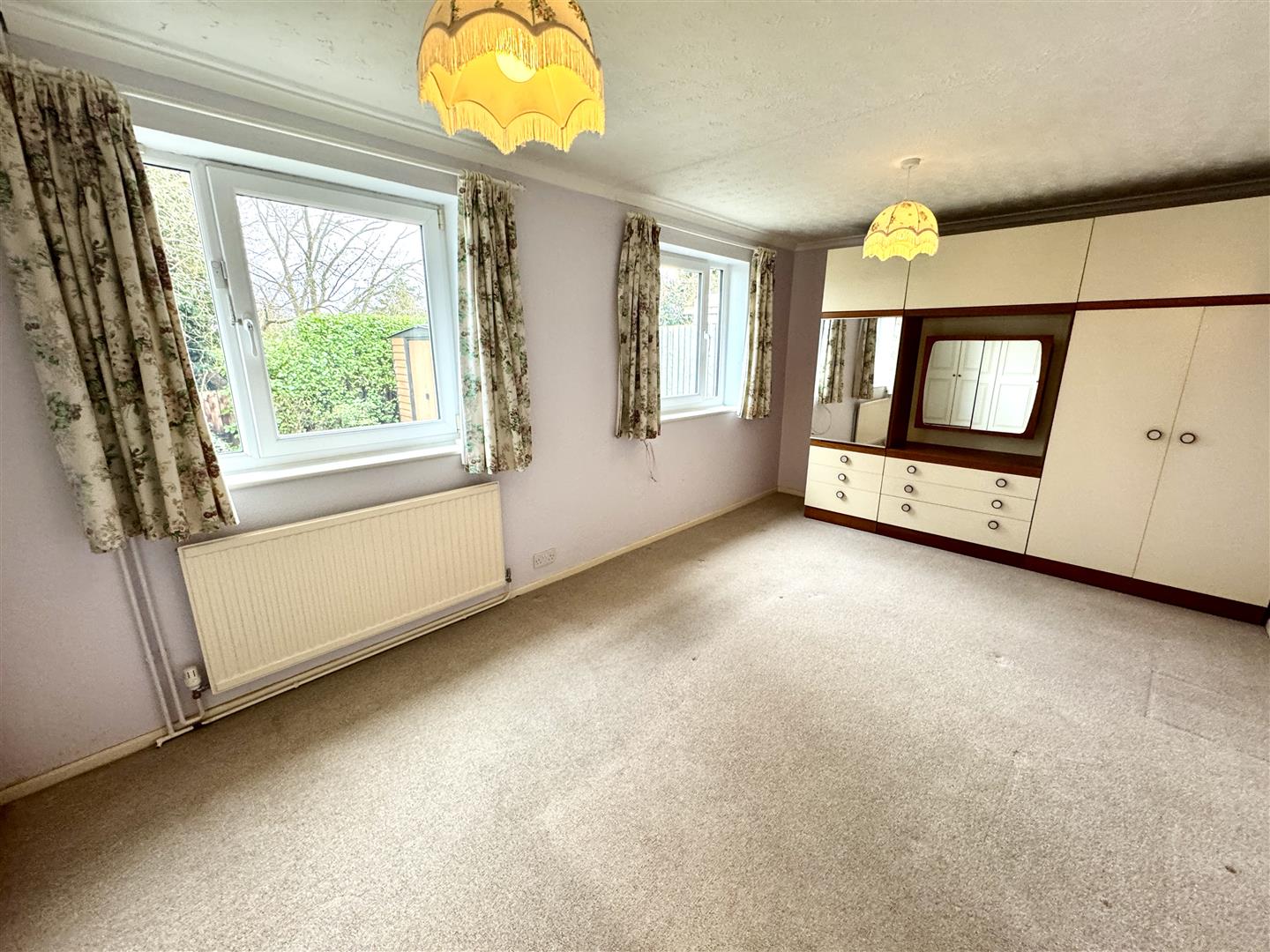 An impressive double bedroom with two windows to the rear garden with attractive views. Built-in wardrobe.