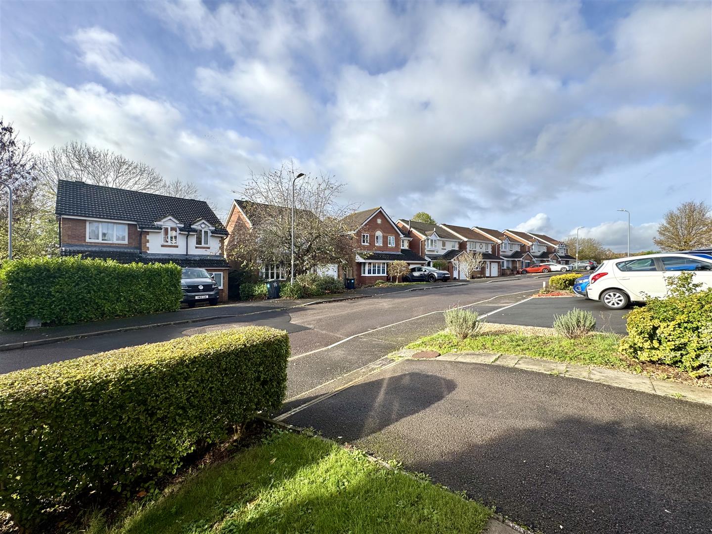 To the front of the property a low maintenance garden area laid to lawn, bordered by a low level hedgerow. A paved pathway leads to the front entrance door with a useful storm porch, and a further pedestrian paved pathway leads down the side of the property to the rear garden. The rear garden comprises a paved patio area and a good size lawned area, this leads to a further raised decking area in the far corner, providing an ideal sunny spot to dine alfresco. There is also an area with mature trees and shrubs. The rear garden is fully enclosed by timber fencing to all sides and benefits gated pedestrian access leading to the front of the property.